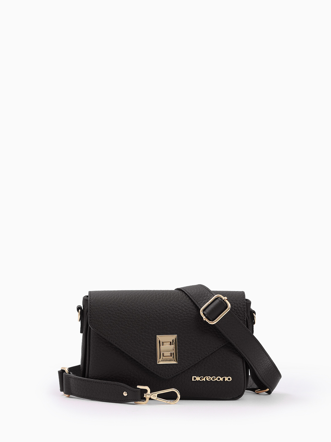 Сумка через плечо с клапаном и поворотной фурнитурой от Di Gregorio из крупнозернистой кожи в чёрном цвете gr8889 zodiaco nero oro