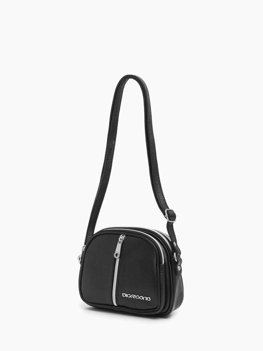 Сумка через плечо в спортивном стиле с серебристой молнией от Di Gregorio в черном цвете gr8829 vitello nero