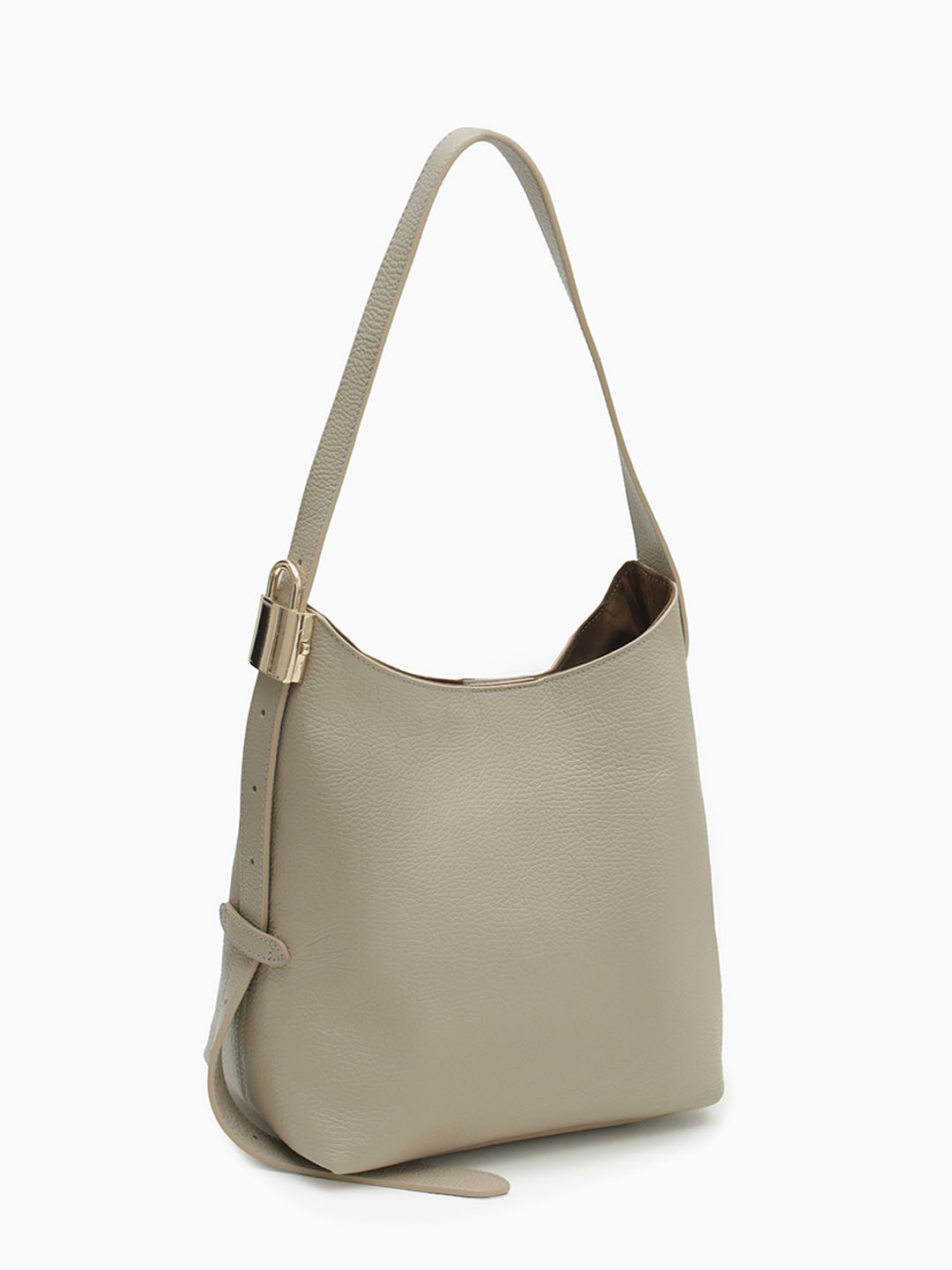 %% Сумка-мешок от Be Nice с фурнитурой в виде замка из натуральной кожи бежевого цвета BN POLETT dollaro marmo