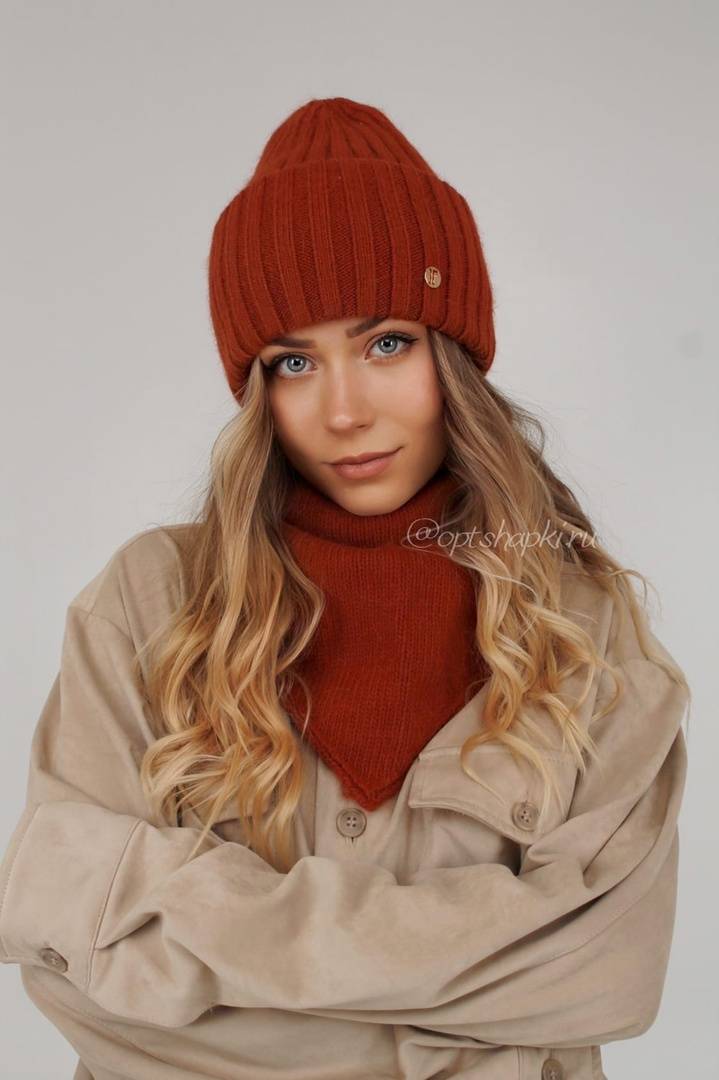Однослойная шапка с высоким двухслойным отворотом из пряжи Angora.