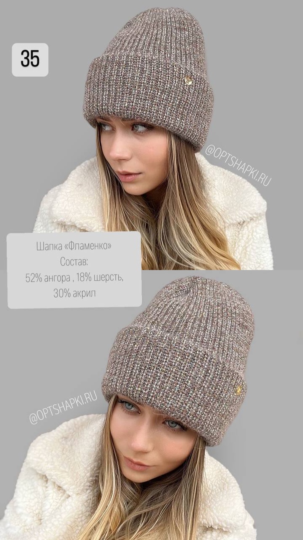 Двухслойная шапка с отворотом из пряжи, Angora с люрексом мультиколор и пайеткой, макушка на стяге.