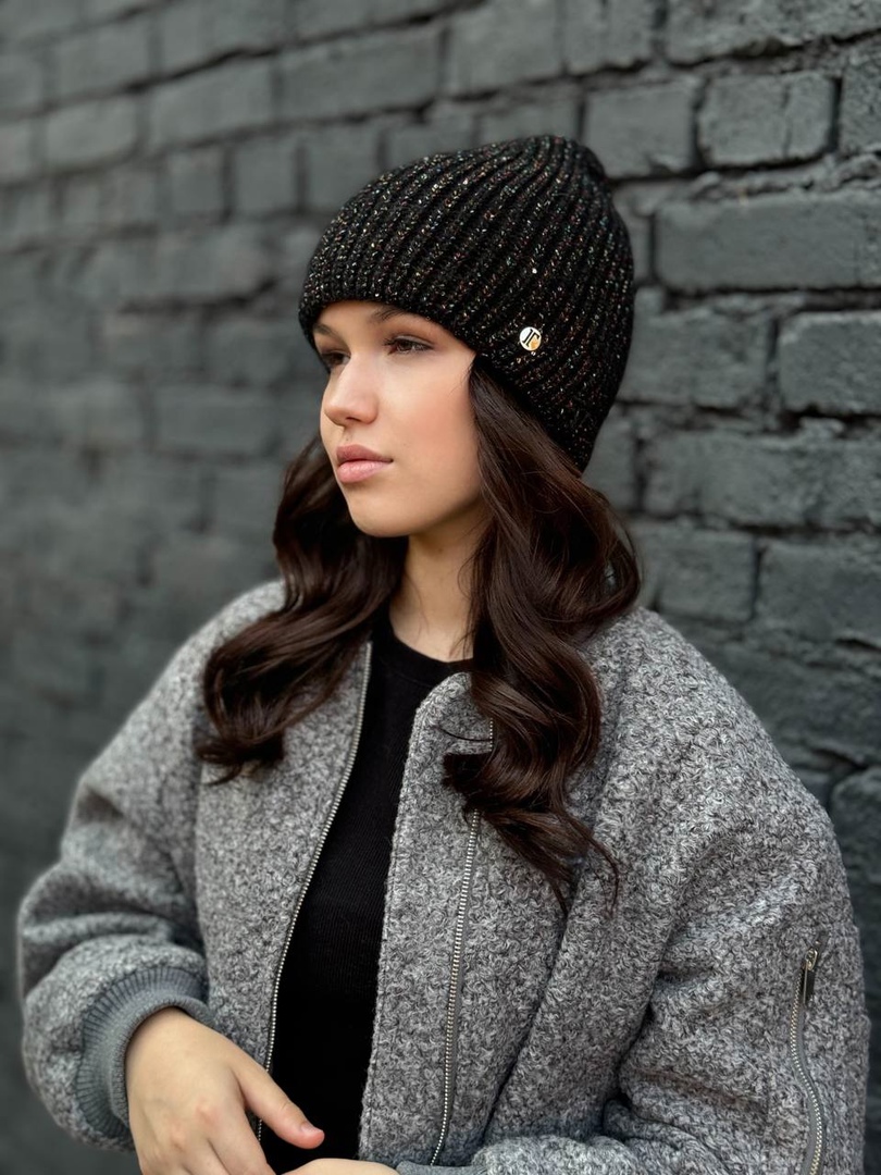 Двухслойная шапка из пряжи Angora с пайеткой и люрексом мультиколор