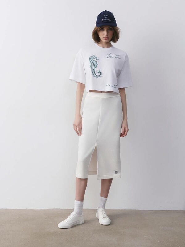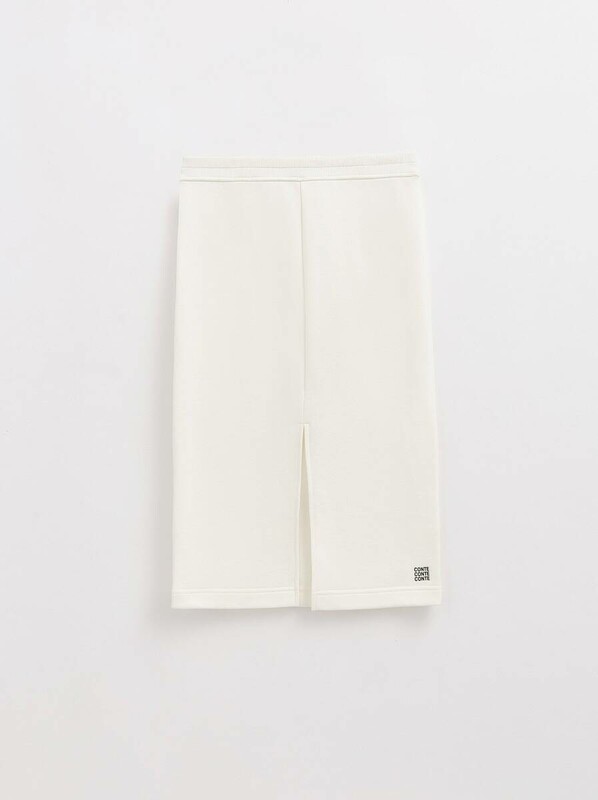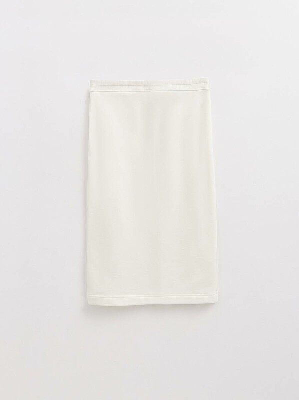 Юбка прямого кроя из футера высокой посадкой станет основой для множества индивидуальных образов и стильных идей.
