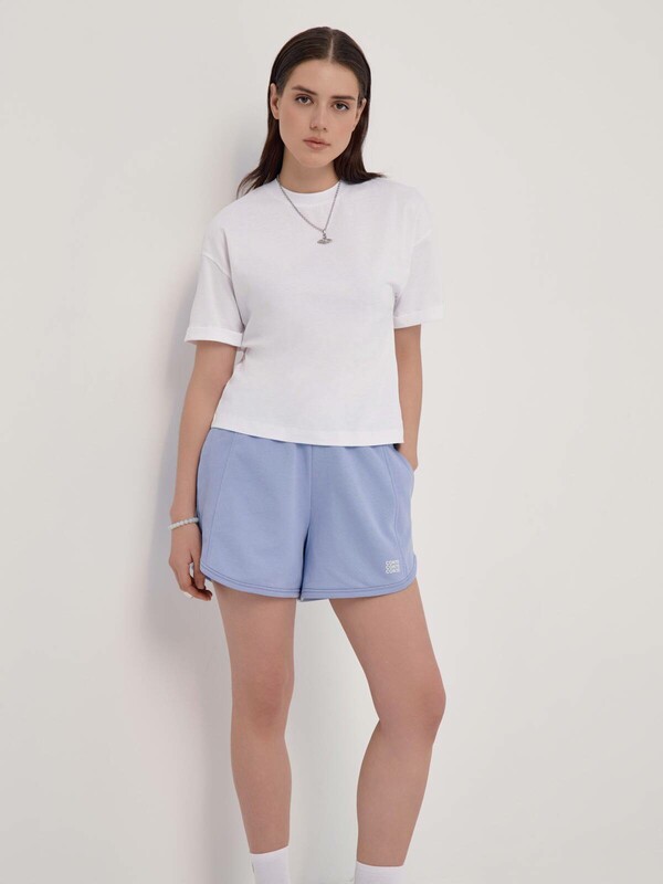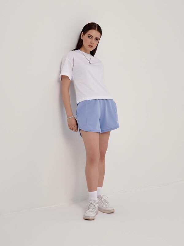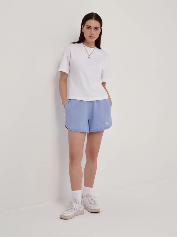 Mini-шорты из футера с фигурным низом станут основой для множества расслабленных базовых образов. • mini • высокая посадка • притачной пояс с эластичной тесьмой внутри • фигурный низ • функциональные боковые карманы • боковые вставки из фактурного полотна в рубчик • мягкий и приятный к телу футер без начеса • по низу - объемная печать с логотипом бренда • сохранение формы и цвета при соблюдении рекомендаций по уходу • безупречный стиль и абсолютная свобода в движениях • стильная основа для расслабленных повседневных образов. хлопок 83%, полиэстер 17%