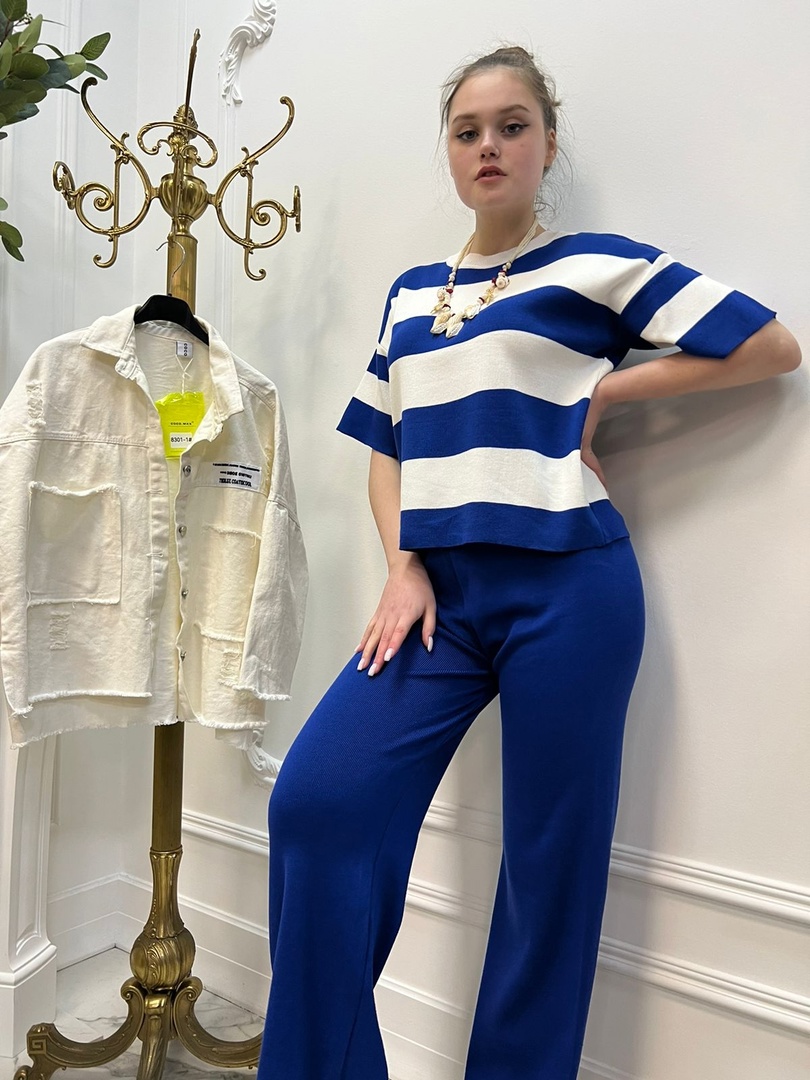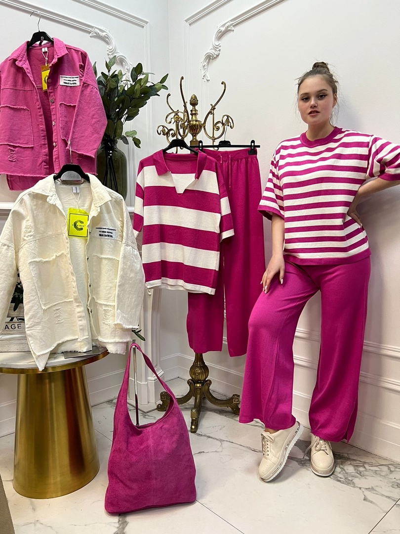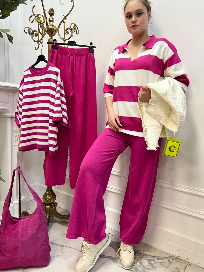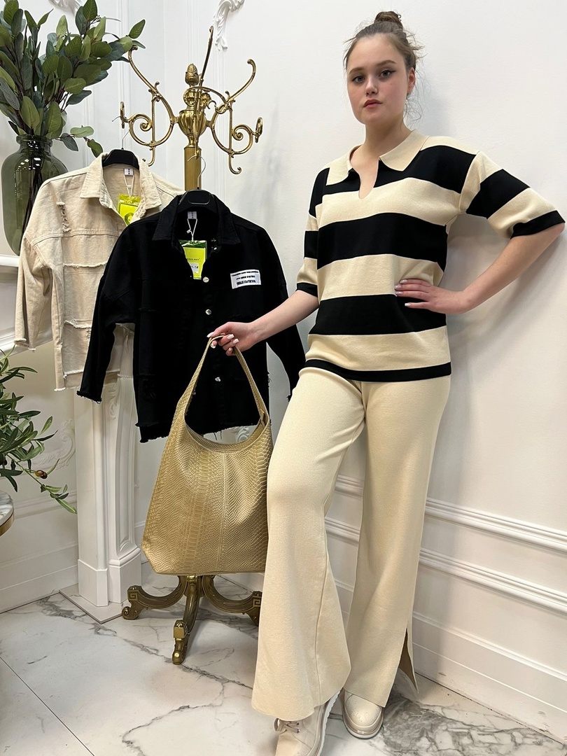 разный вырез у кофт и токая/тонкая полоска, брюки есть с разрезами