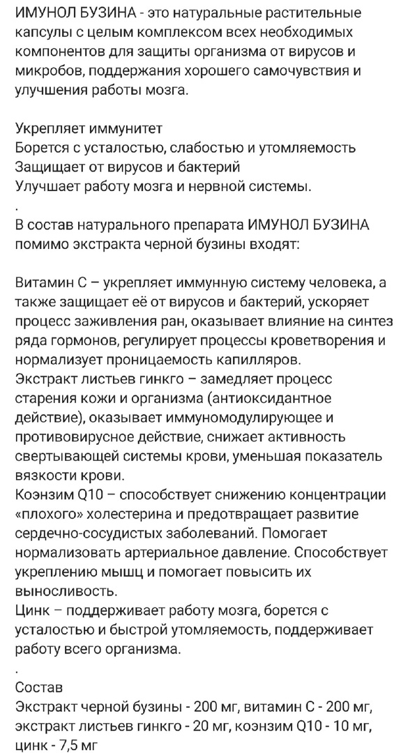 Имунол бузина, С, Цинк, Q10, гинкго билоба 20 капсул