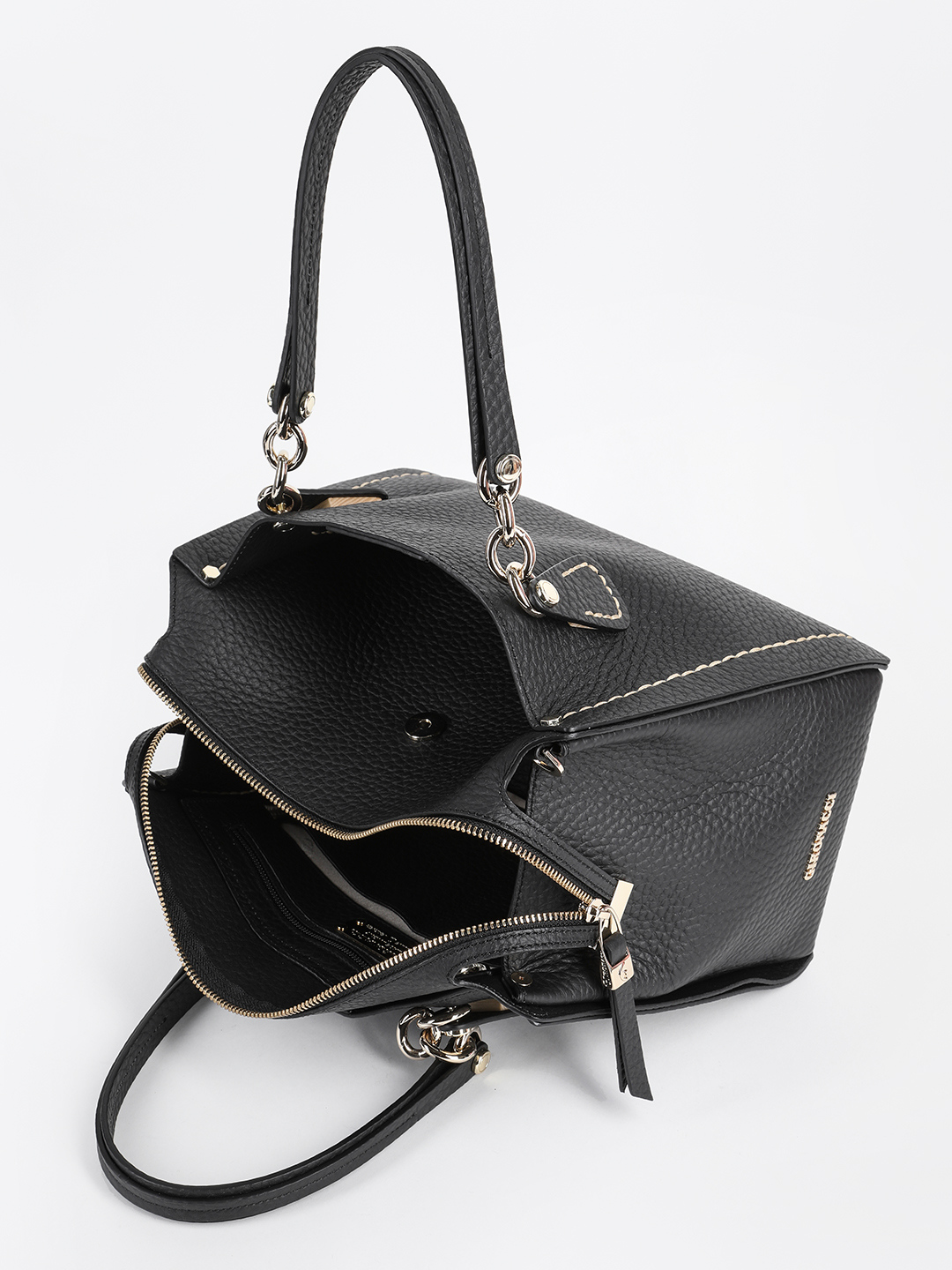 Cумка-тоут с широкой строчкой и боковым металическим логотипом в размере L от gironacci в чёрном цвете gir2431 velvet nero