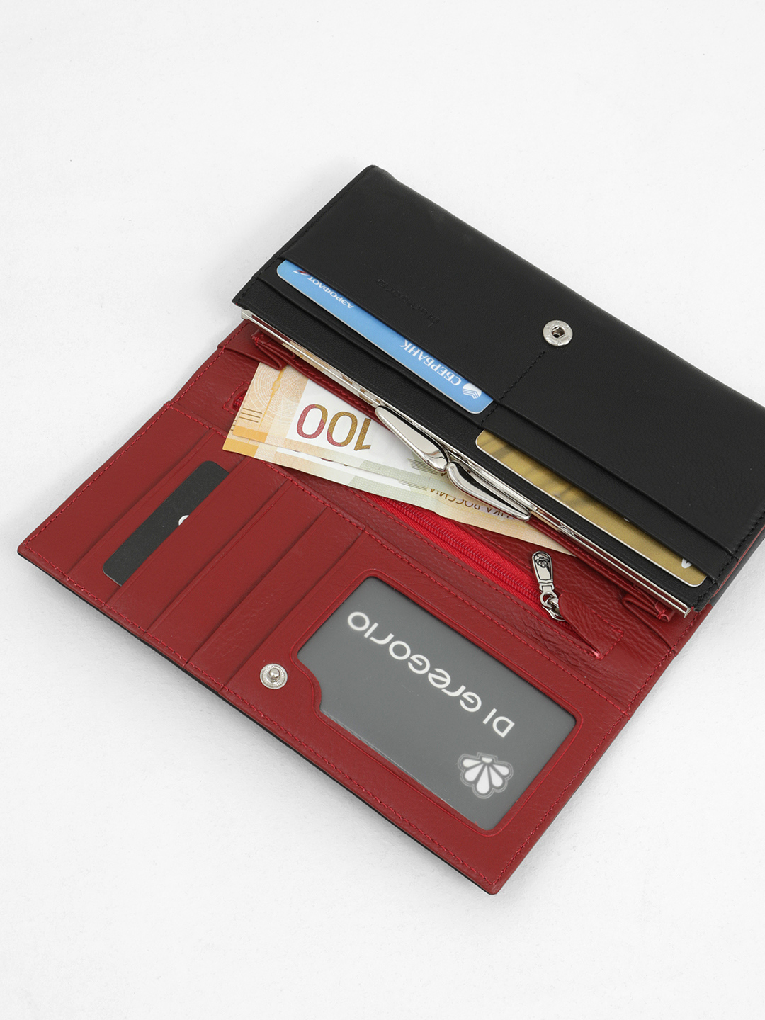 Прямоугольный бумажник от Di Gregorio черного цвета с красной внутренней отделкой кgr1101 А кошелёк женский