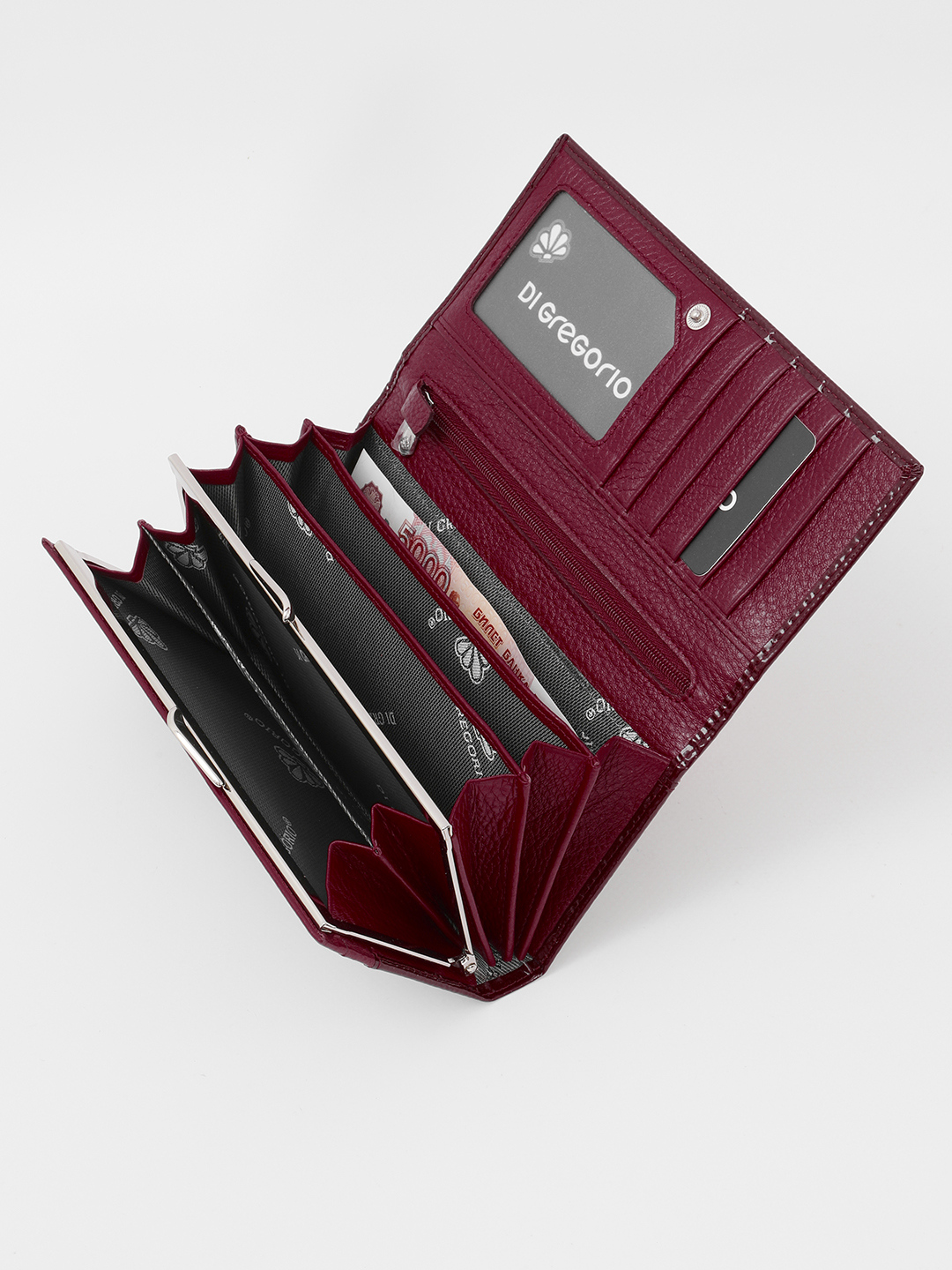 Прямоугольный бумажник с логотипом Di Gregorio из лаковой кожи бордового оттенка кgr8071 Z кошелёк женский