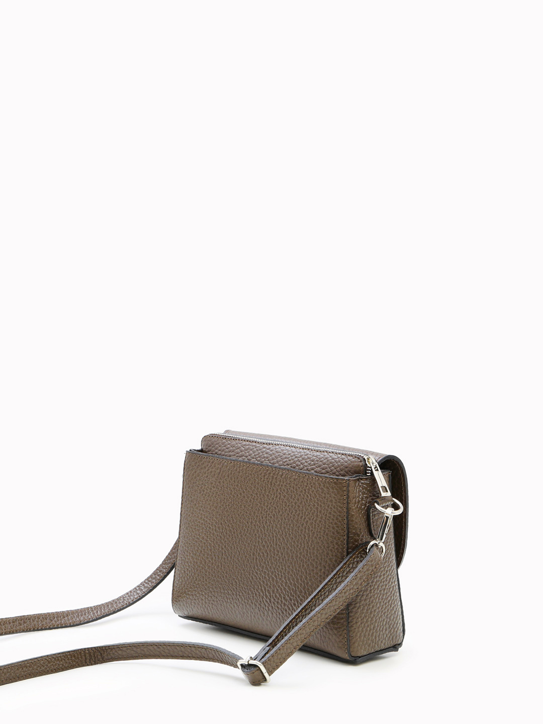 Кросс-боди на плечо с тремя отделениями и круглой фирменной фурнитурой от FOLLE в цвете тауп fo125 buffalo talpa