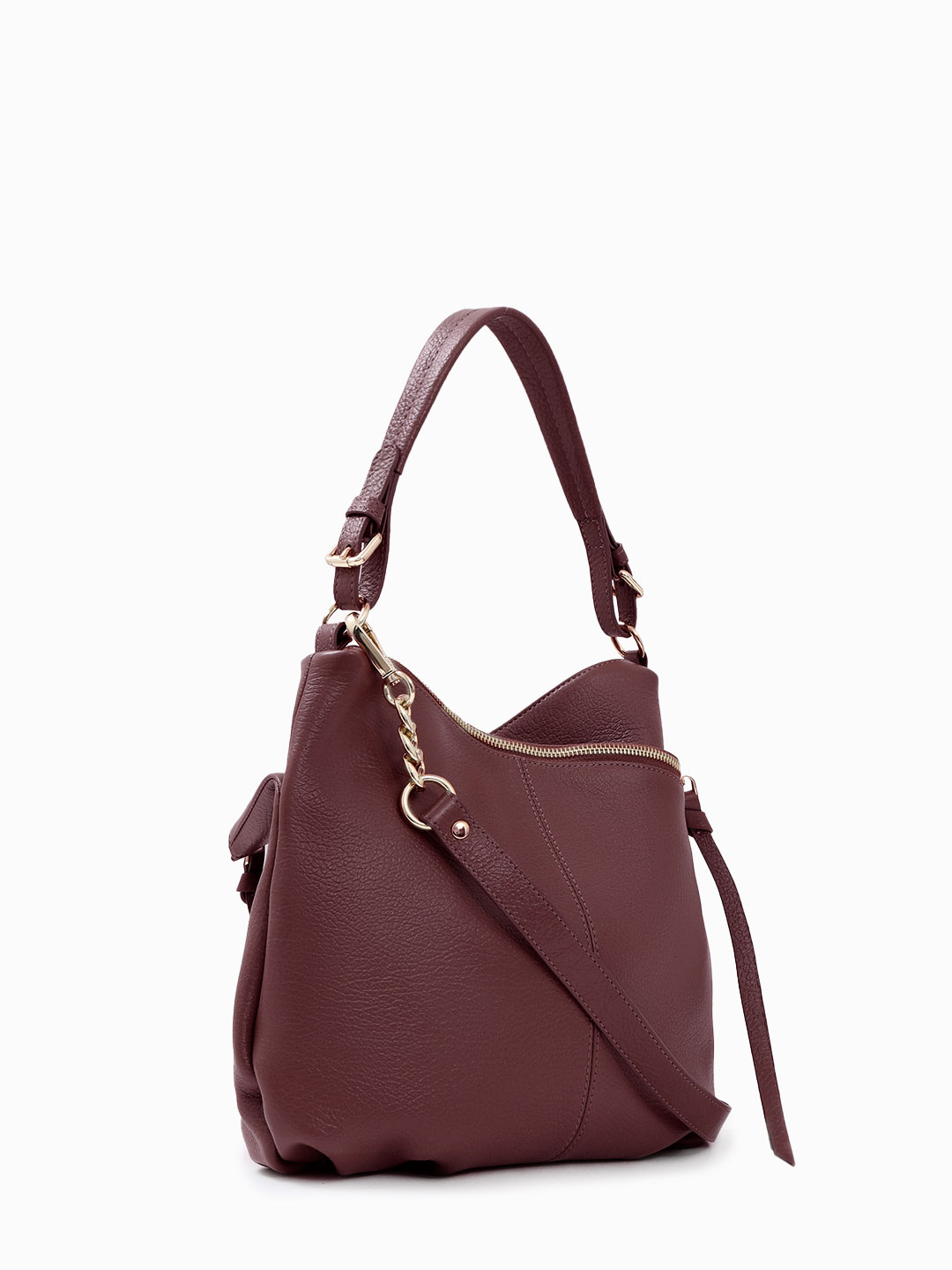 Сумка-хобо с длинными кожаными пуллерами и золотистой фурнитурой от KELLEN бордового цвета KN1220 dollaro bordo