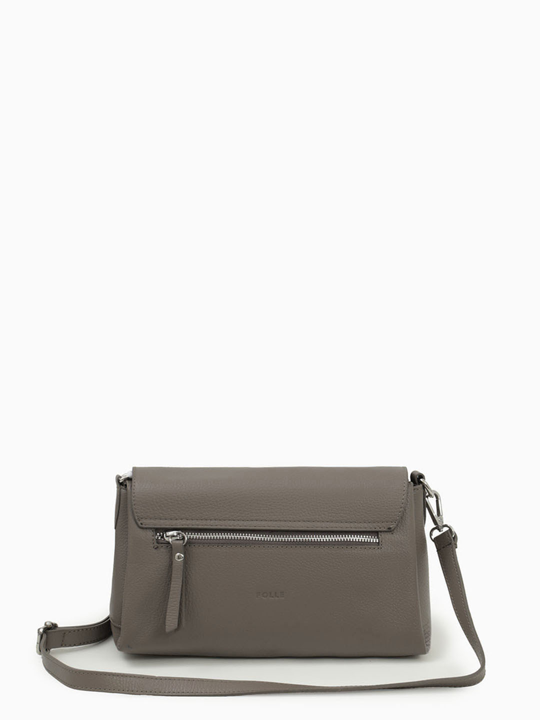 Небольшая сумка кросс-боди с клапаном от FOLLE прямоугольной формы из натуральной кожи серого цвета fo480 dollaro french grey