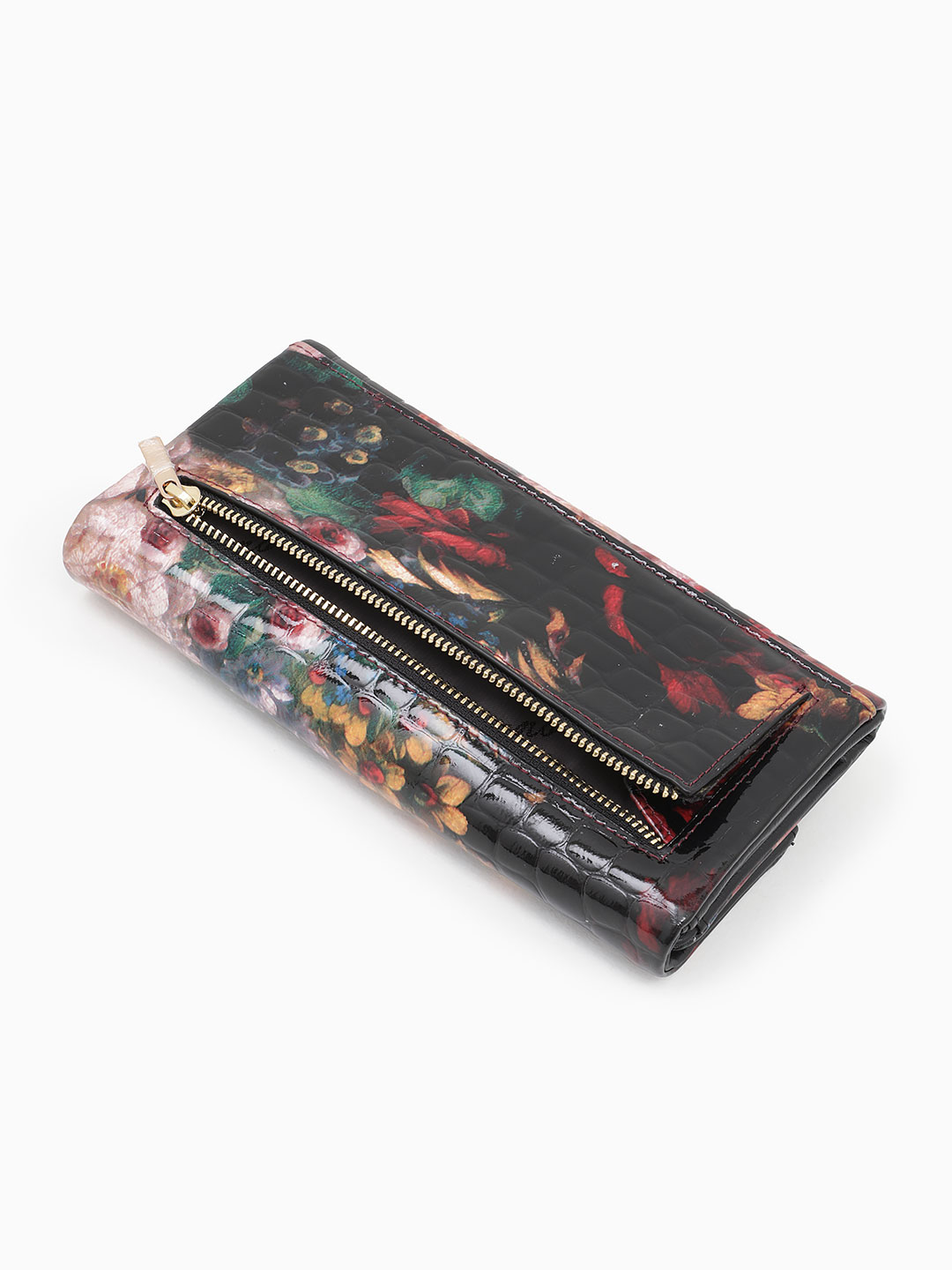 Большой кошелёк с пуллером с металлической кисточкой и логотипом Alessandro Beato из лакированной кожи под крокодила с принтом цветов кab214-6829-6552 кошелёк женский