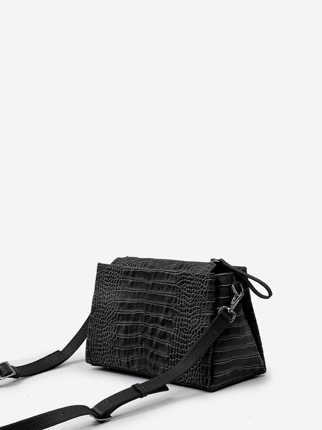 ПРЯМОУГОЛЬНАЯ КРОСС-БОДИ С ТРЕМЯ ОТДЕЛЕНИЯМИ ОТ VANESSA SCANI ИЗ КОЖИ ПОД КРОКОДИЛА ЧЁРНОГО ЦВЕТА