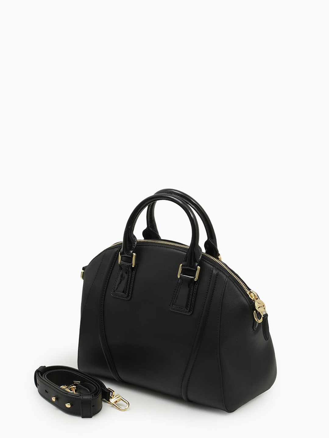 Боулер от Nannini из черной кожи с вставкой из меха с принтом под корову лаковыми ручками na16415 leopardo leather milch nero