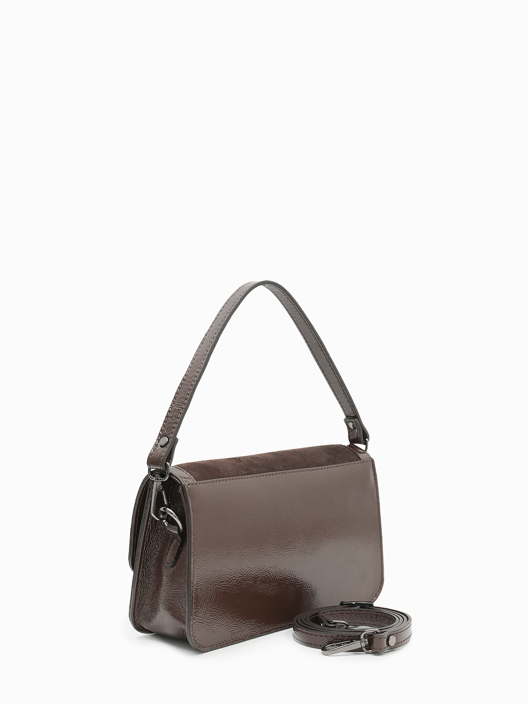 Сумка-багет с крупной монограммой RIPANI из натуральной лакированной кожи и замши шоколадного цвета rp322 QN 00070 camoscio lak cioccolato