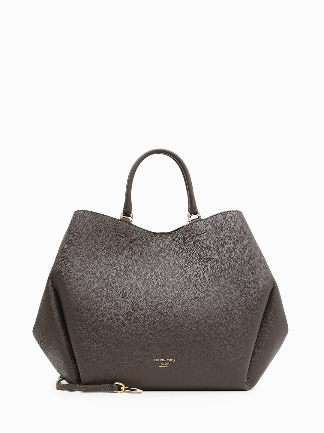 Большой тоут с кошельком и узким ремнем на плечо от Christian Villa из натуральной кожи коричневого цвета cv06368 vitello tm