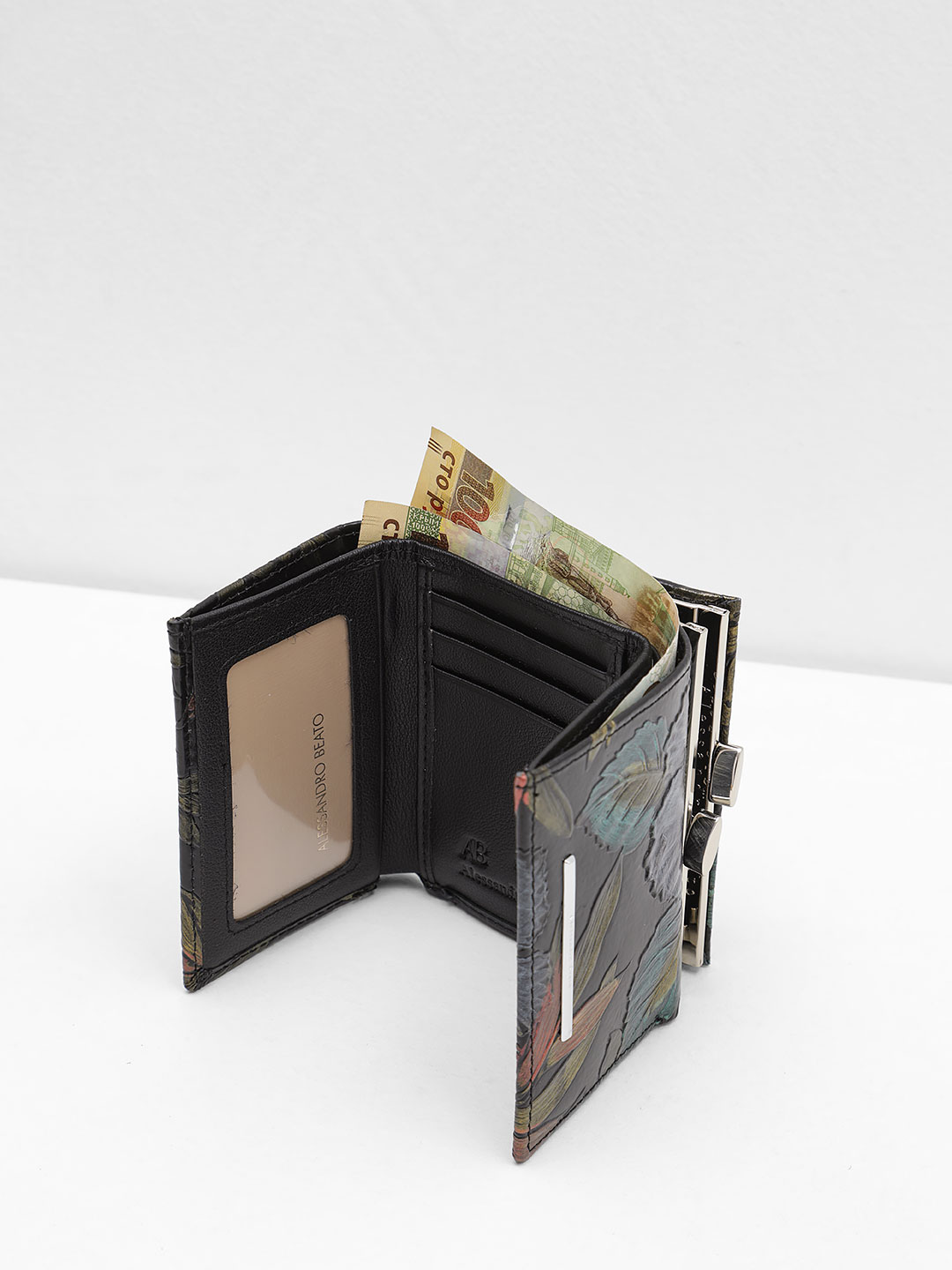 Небольшой кошелёк с застёжкой-фермуаром от Alessandro Beato из черной кожи с цветочным тиснением и принтом кab165-5426-6552 кошелёк женский