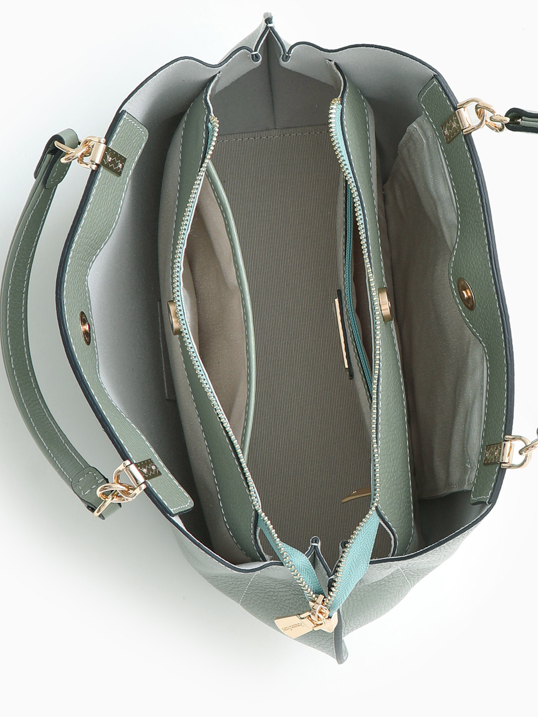 Базовый тоут с тремя отделениями от Vanessa Scani из натуральной кожи мятного цвета vs0339-207 vitello menta