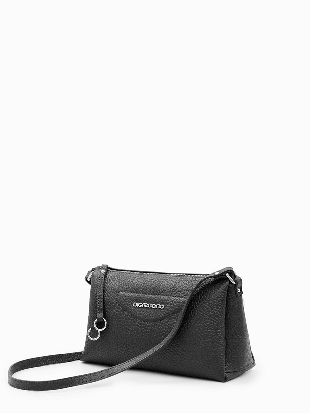 Кросс-боди с двумя кожаными пуллерами и металлическим логотипом Di Gregorio черного цвета с серебристой фурнитурой gr8766 zodiaco nero nikel