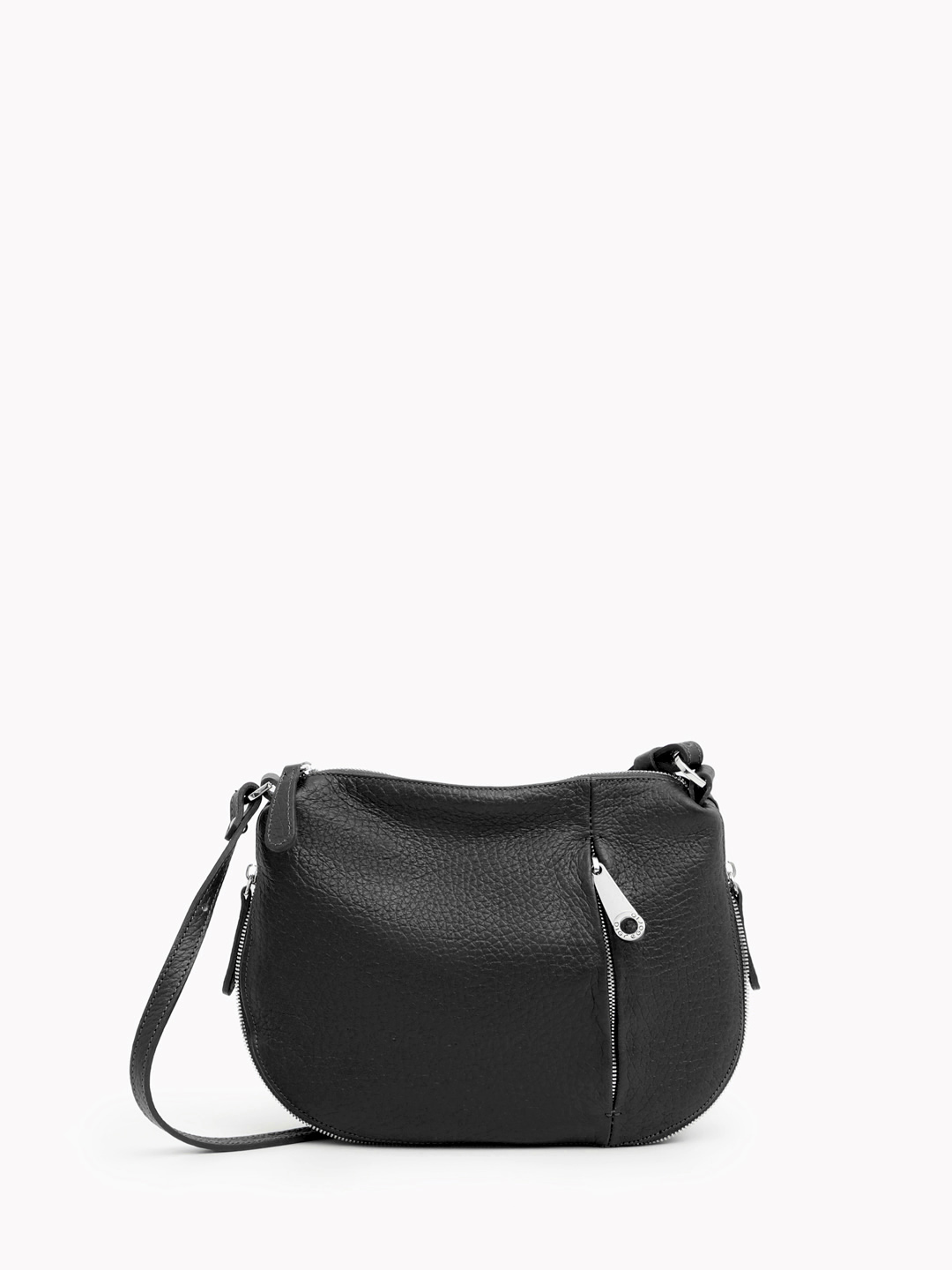 Полукруглая кросс-боди с молнией-расширителем и вертикальным карманом от Di Gregorio в черном цвете gr755 zodiaco nero