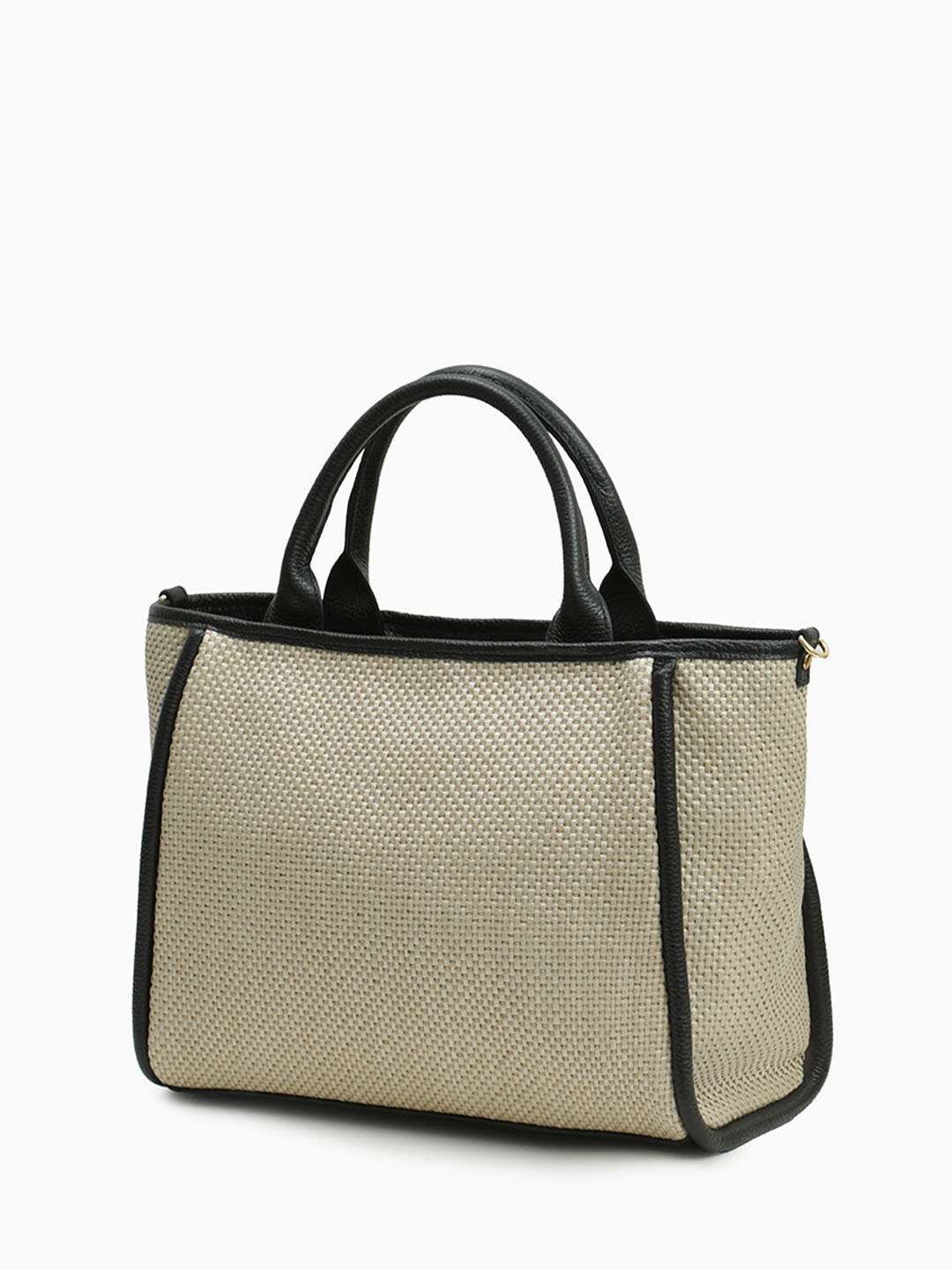 Тоут от Ripani из бежевой рафии и натуральной кожи черного цвета rp6001 CO 00403 ecru nero