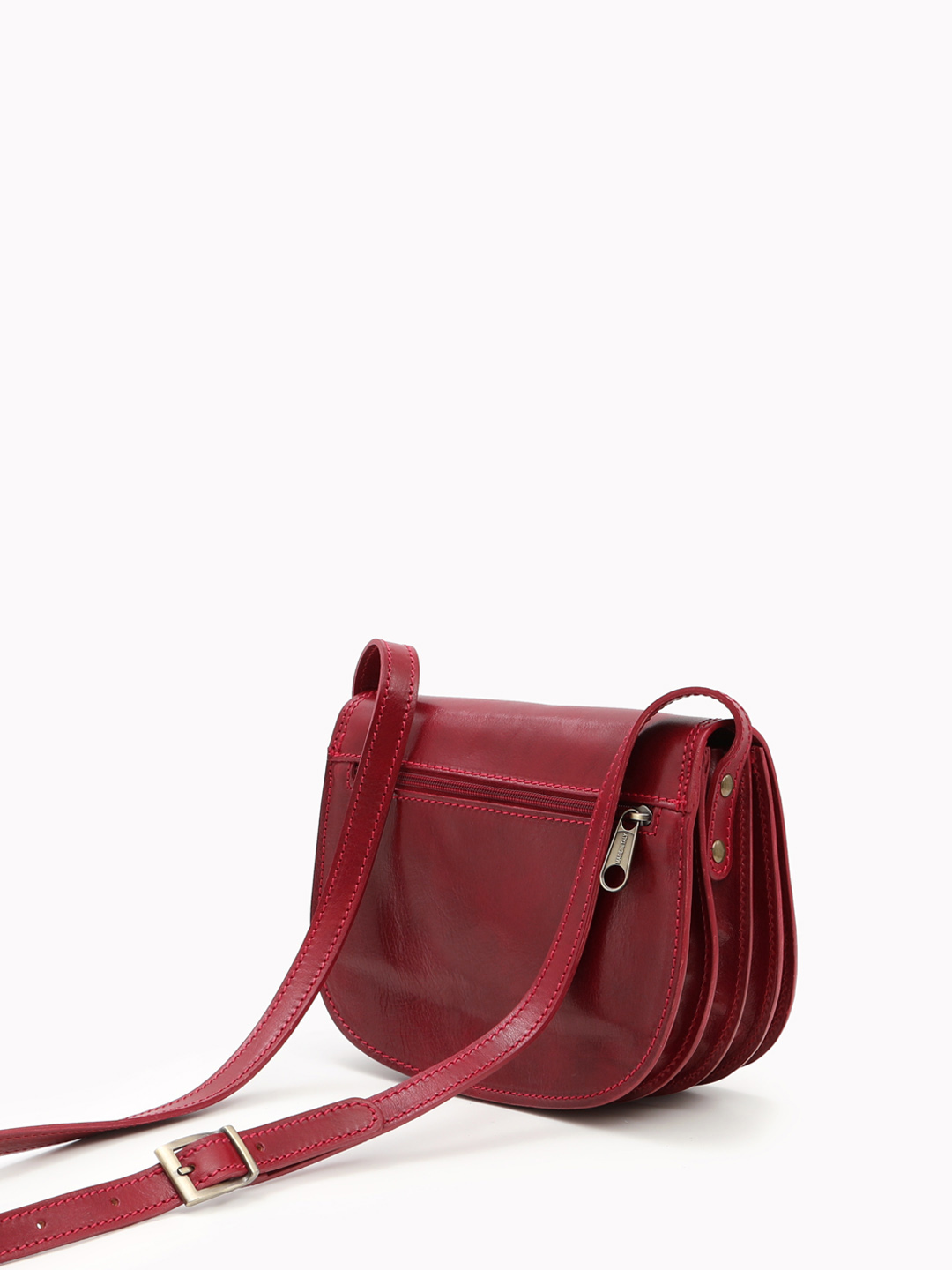 ПОЛУКРУГЛАЯ КРОСС-БОДИ С РЕГУЛИРУЕМЫМ РЕМНЁМ ОТ FOLLE ИЗ КОЖИ VACCHETA РУБИНОВОГО ОТТЕНКА