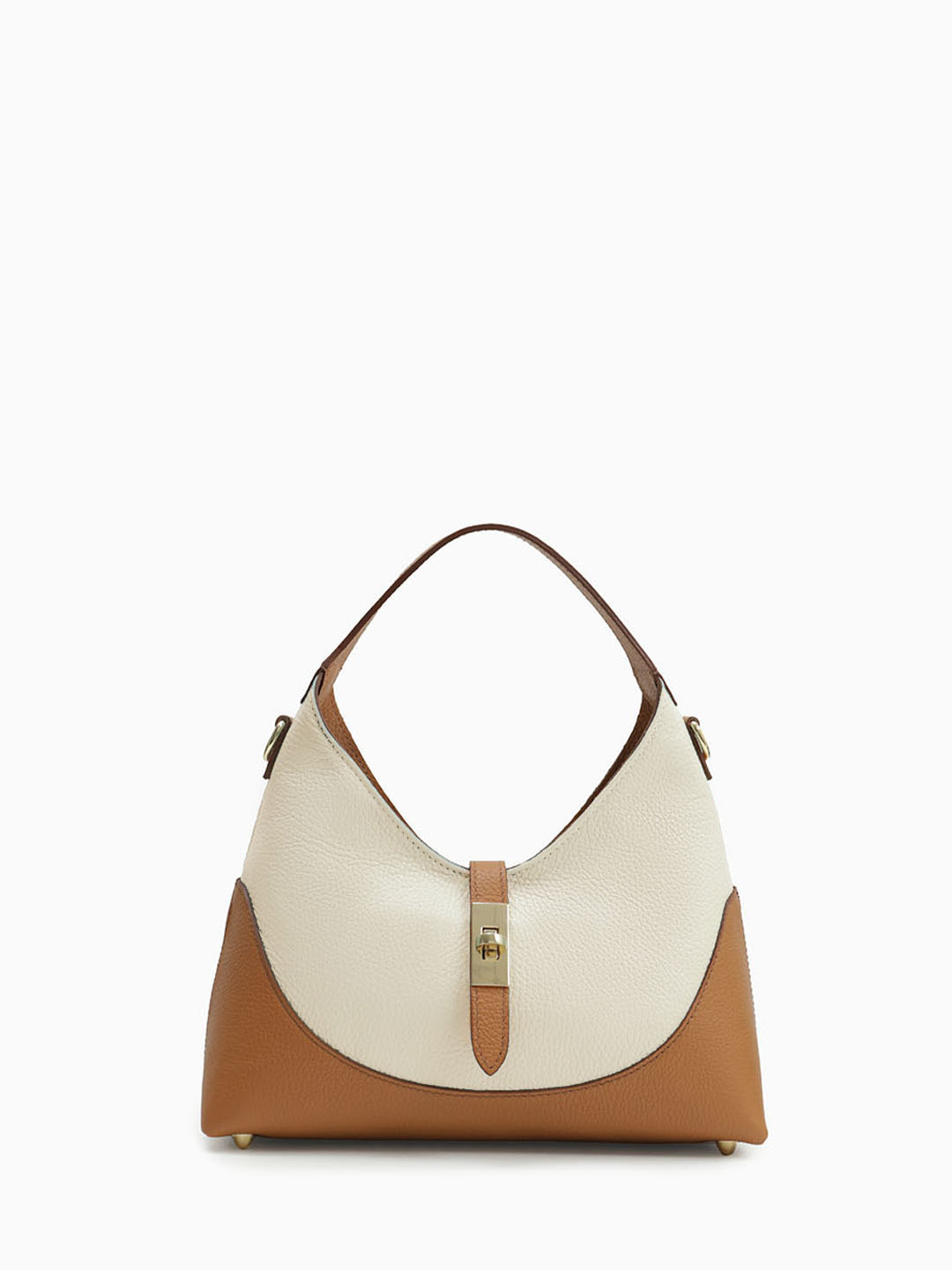Мини-хобо с узким клапаном и поворотным замком от Be Nice из натуральной кожи белого цвета и цвета тауп BN HELGA dollaro bianco marmo