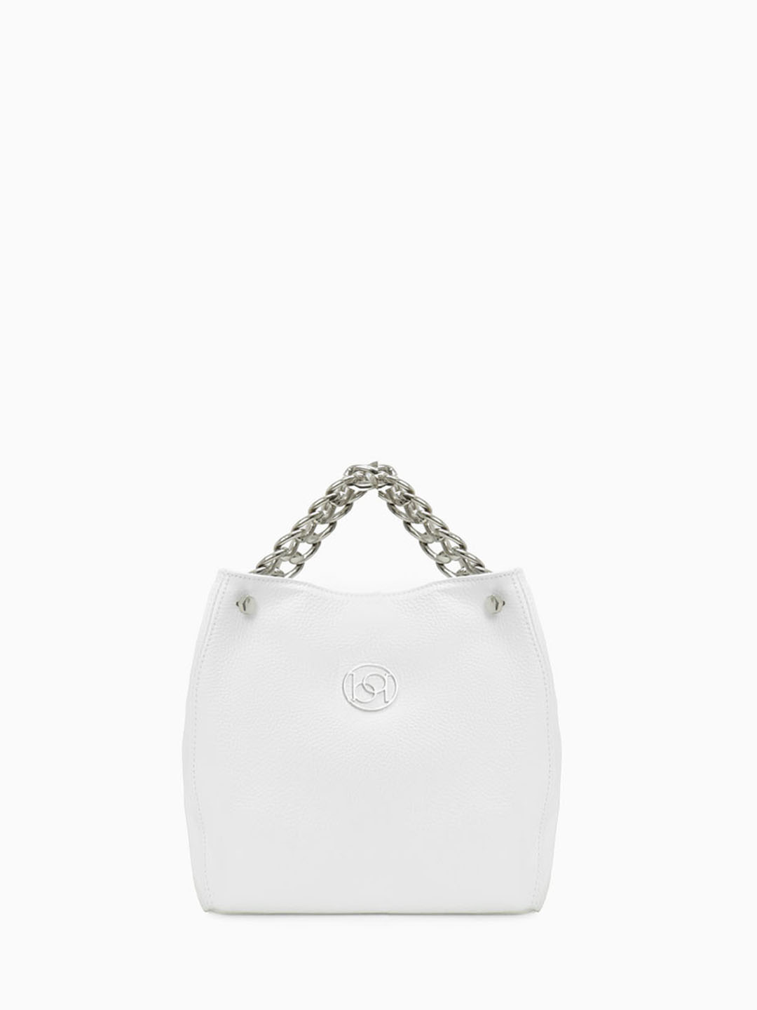 Сумка тоут от итальянского бренда BE NICE выполнена из натуральной кожи, декорирована ручками в виде цепей и круглым металлическим логотипом бренда.  Данная модель закрывается на молнию.  Прилагается ремень, максимальная длина 120 см, регулируется.