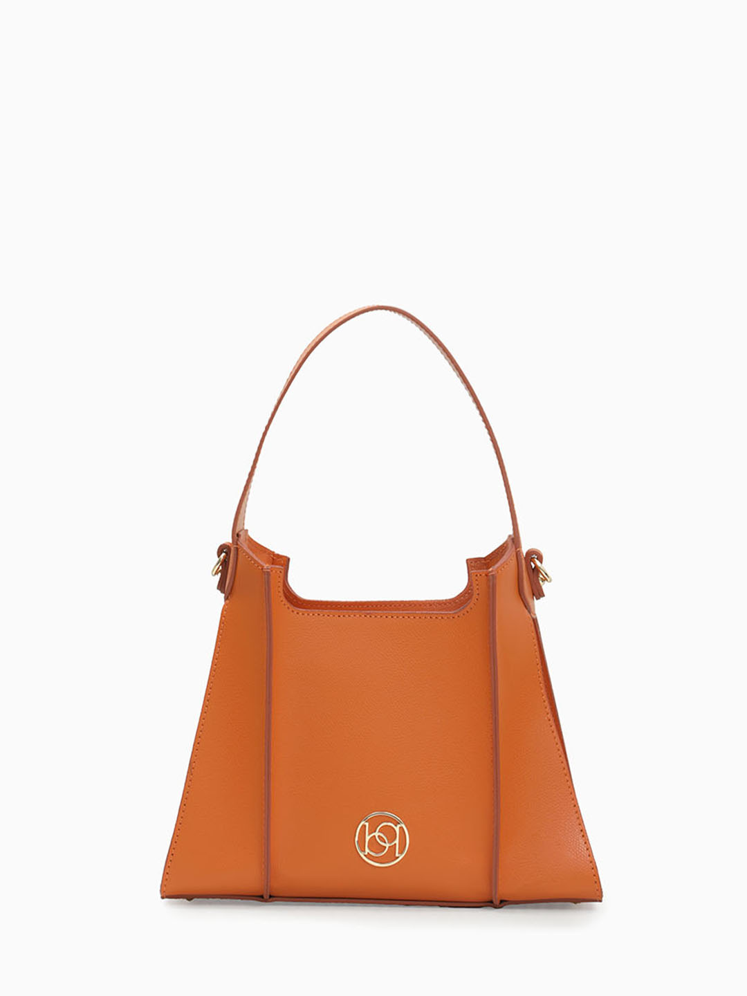 Однорукий тоут жесткой формы с декоративными складками и круглым логотипом от Be Nice из кожи оранжевого цвета BN FLORA palmellato orange
