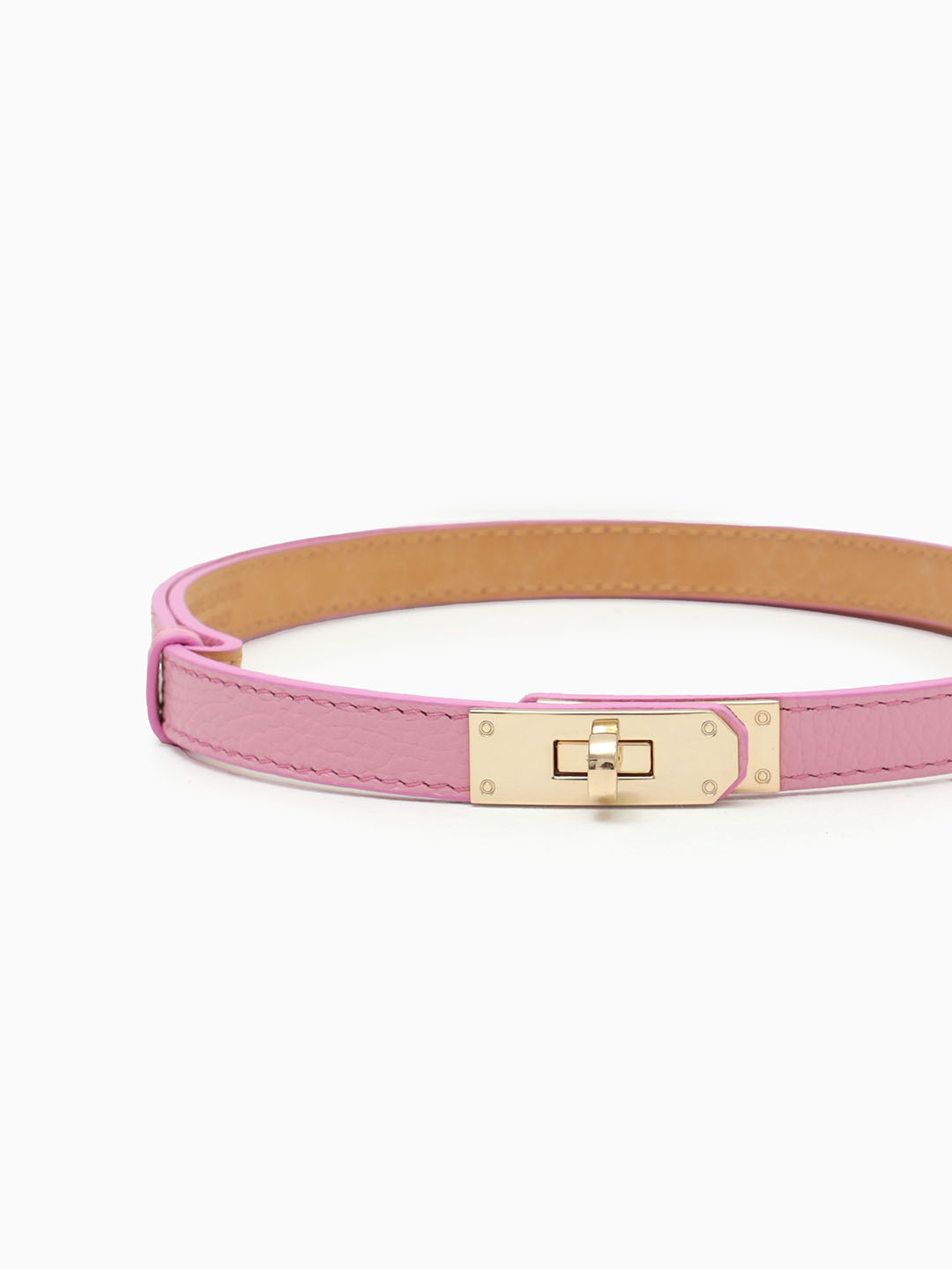 Узкий женский ремень от FOLLE из натуральной кожи розового цвета с золотистой фурнитурой рfo ремень узкий vitello barbie oro