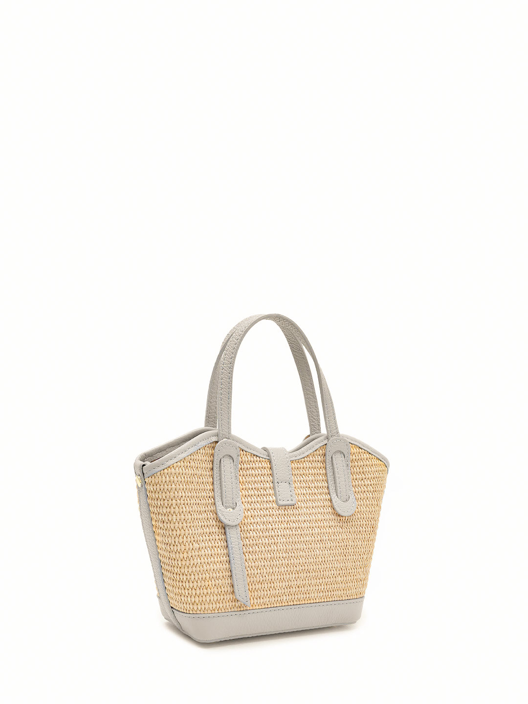 Небольшой тоут от бренда BE NICE из бежевой рафии и натуральной кожи бежево-серого оттенка BN ESTELLA-S raffia beige marmo
