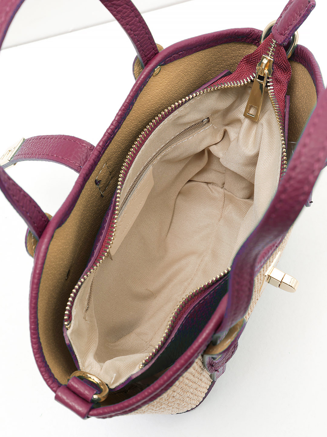 Небольшой тоут от бренда BE NICE из бежевой рафии и натуральной кожи фиолетового цвета BN ESTELLA-S raffia beige violet