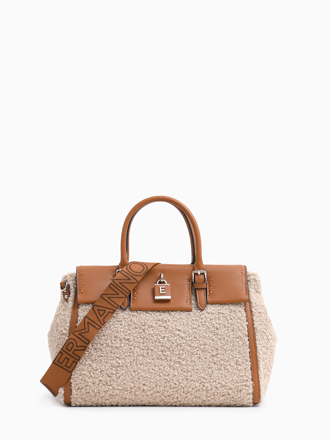 %% Сэтчел с брендированным ремнём и меховой отделкой от ERMANNO FIRENZE в рыжем оттенке cuoio sce12401749 cream