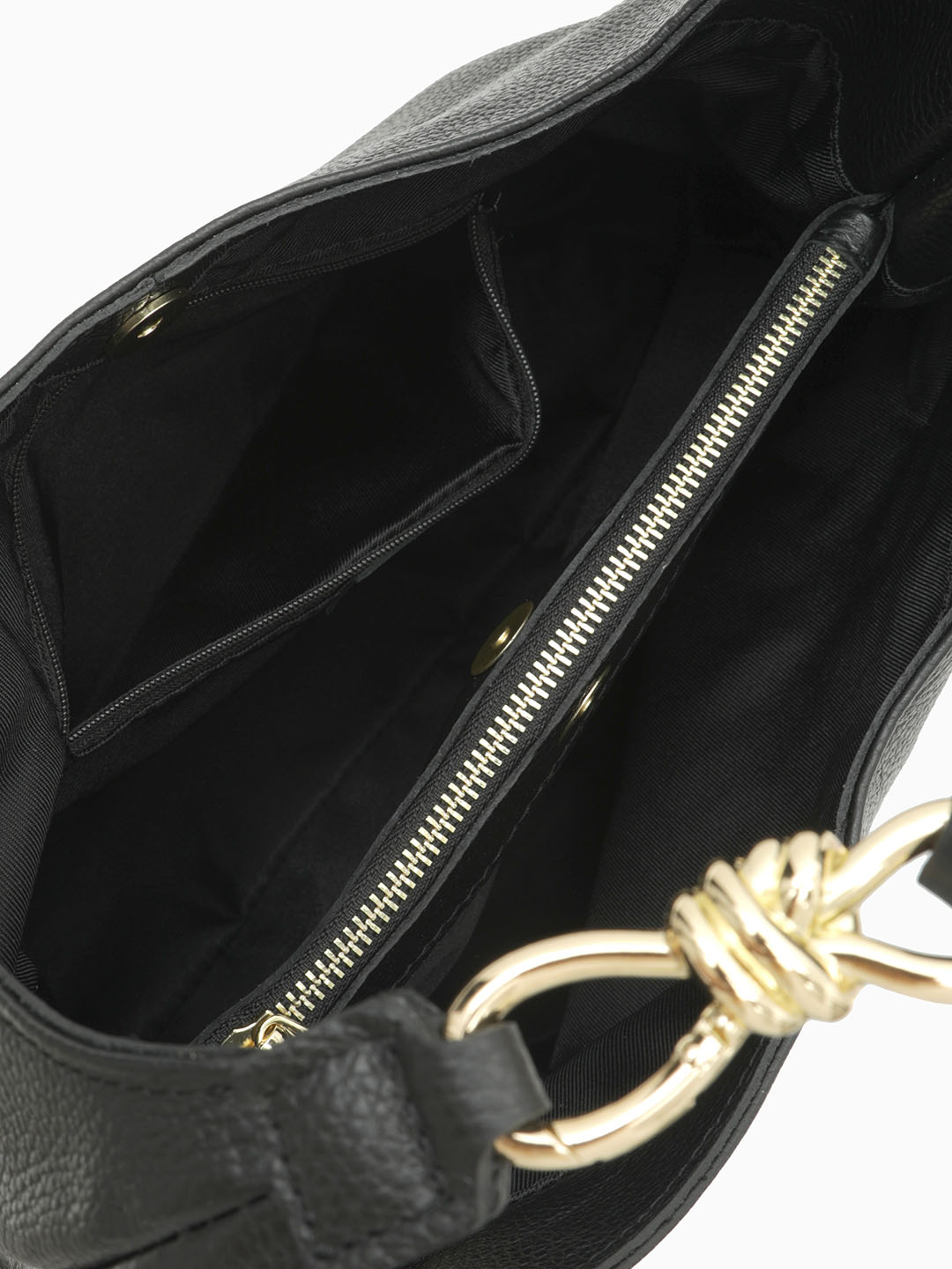 Сумка-мешок с золотистой фурнитурой в виде узла на ручке из черной кожи fo1712 dollaro nero