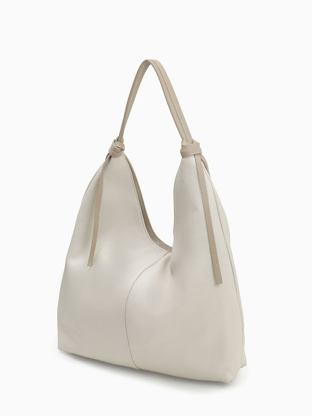 Сумка-мешок с кожаными узлами на ручках от Folle из натуральной кожи бежевого цвета с ручкой цвета тауп fo1718 dollaro beige marmo