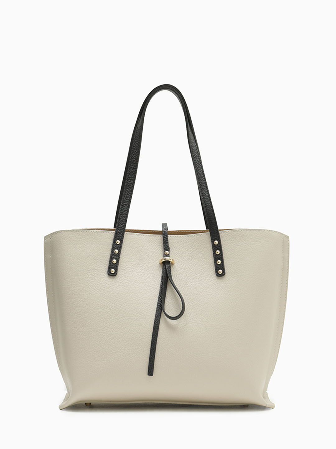 Классическая сумка с узкими ручками на клепках из полужесткой натуральной кожи бежевого цвета fo1720 dollaro beige