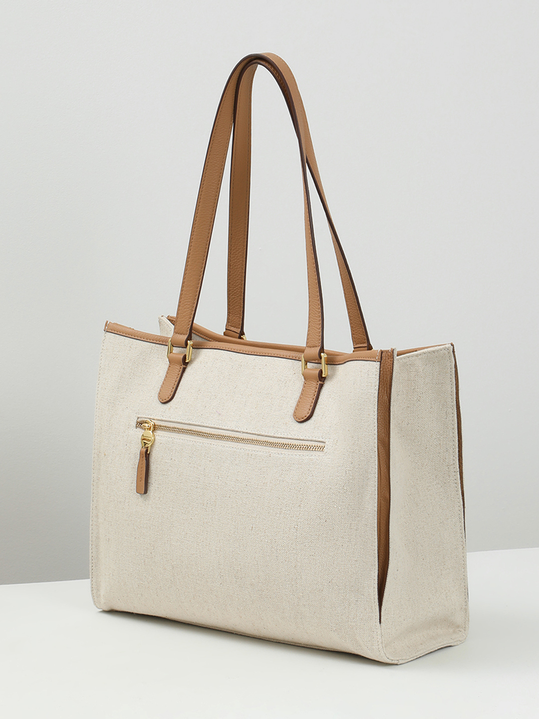 Тоут с вместительным внешним карманом от NANNINI из текстиля и натуральной кожи оттенка кэмел na18539 canvas grigio camel