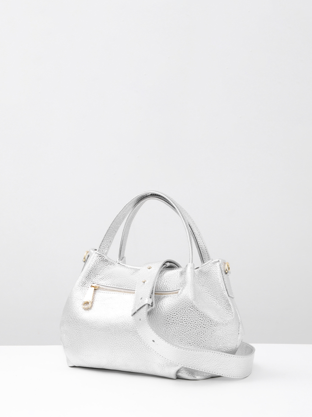 Небольшая сумка с дополнительным кошельком из серебристой кожи от Di Gregorio gr8810 vit laminato argento +кошелёк