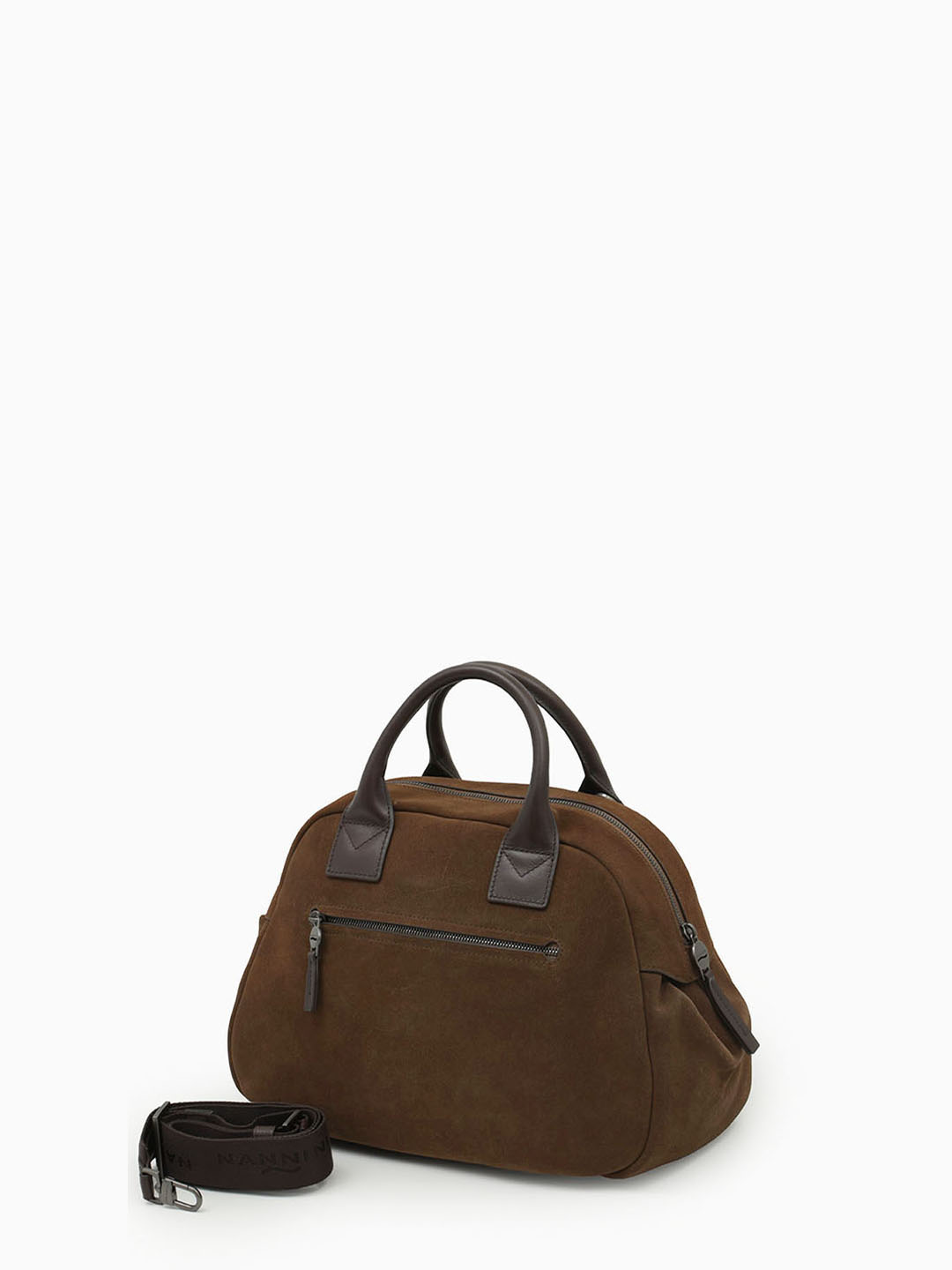 Сумка-боулер средного формата от Nannini из замши темно-рыжего цвета с элементами отделки из коричневой кожи na18469 nabuk yankee mustang