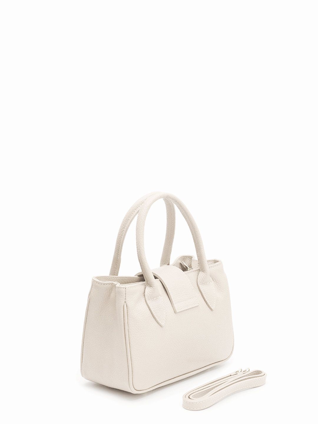 Небольшая классическая сумка с узким клапаном и поворотным замком с деревянным элементом из натуральной бежевой кожи gr9171 vitello latte