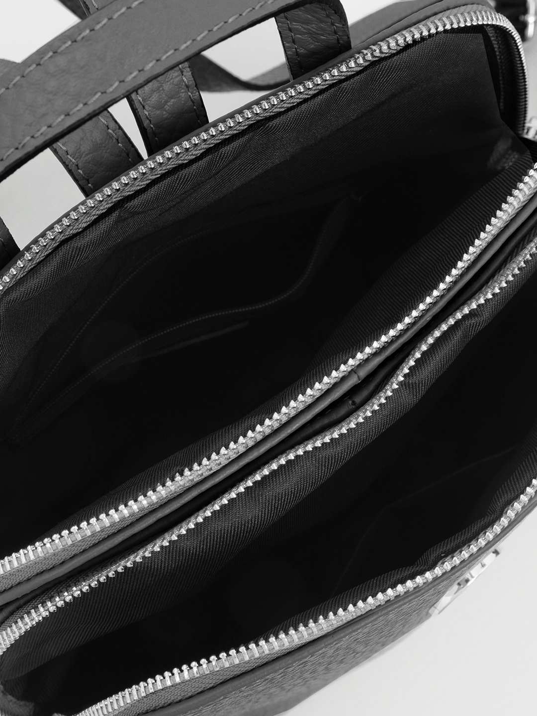 Стильный рюкзак от итальянского бренда FOLLE выполнен из натуральной крупнозернистой кожи buffalo, декорирован круглой фурнитурой с логотипом бренда. Данная модель состоит из двух автономных отделений, каждое закрывается на молнию