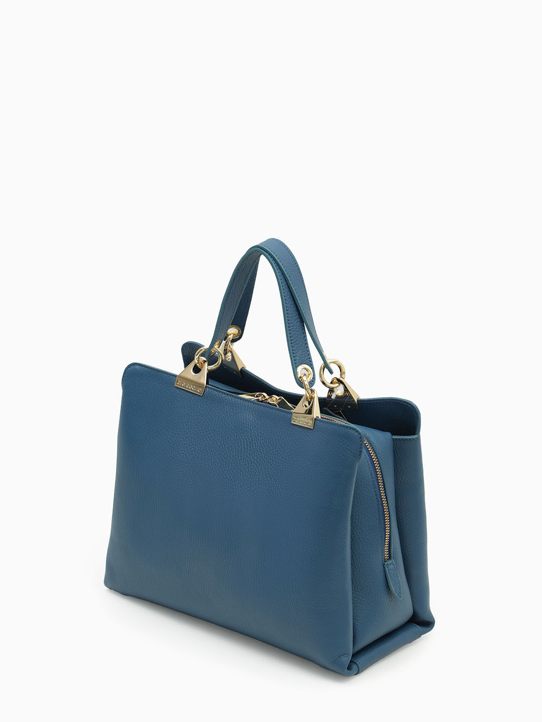 Классическая деловая сумка от бренда Di Gregorio с тремя отделами в синем оттенке gr1987 vitello blu