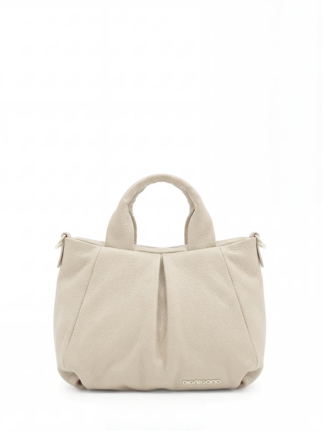 Сумка от Di Gregorio с декоративной складкой по середине и металлическим логотипом бренда из натуральной бежевой кожи gr9158 vitello latte