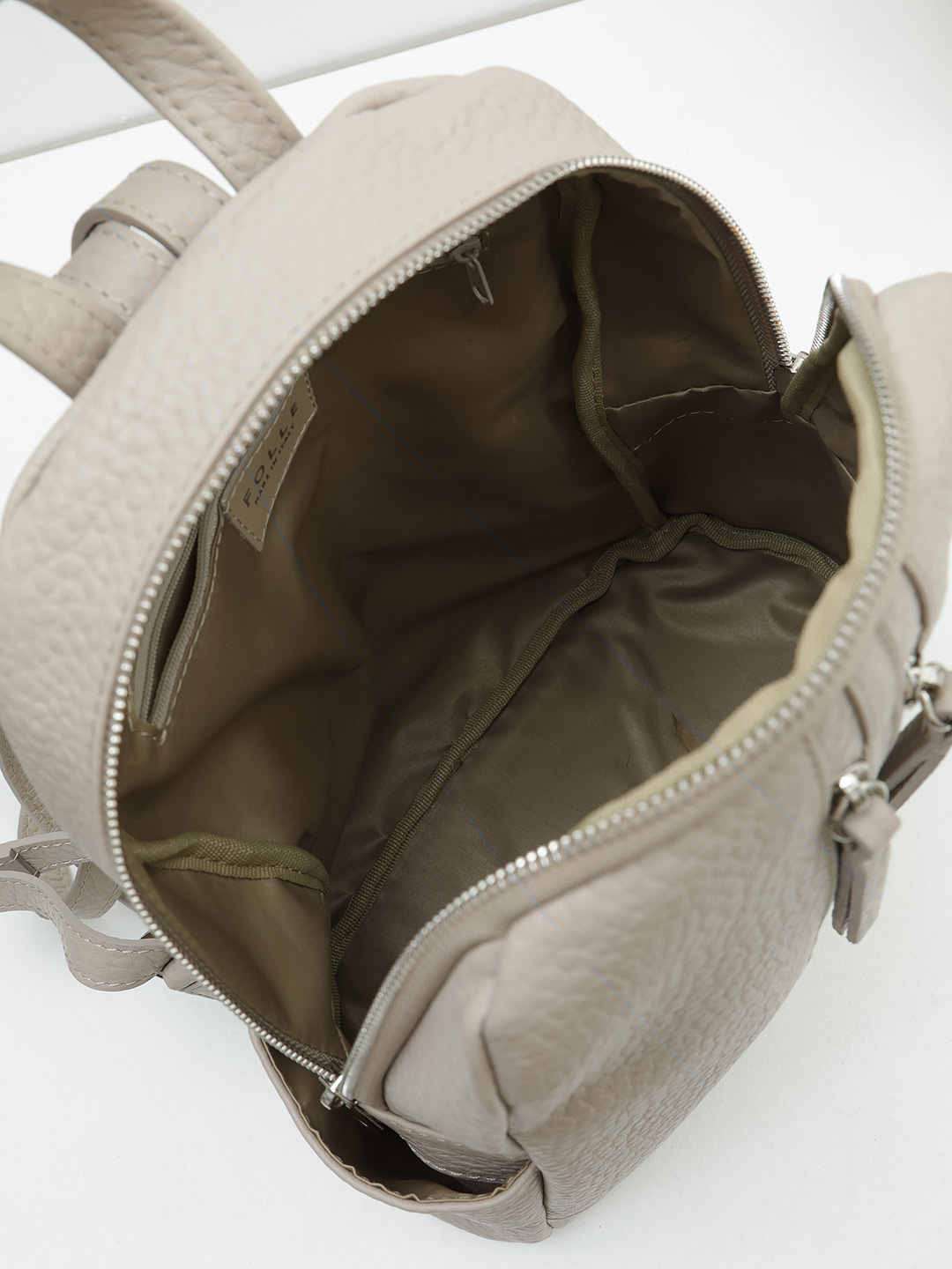 РЮКЗАК В РАЗМЕРЕ М С ДВУМЯ БОКОВЫМИ КАРМАНАМИ И ДВУМЯ ПЕРЕДНИМИ НА МОЛНИИ ОТ FOLLE В СЕРО-БЕЖЕВОМ ЦВЕТЕ