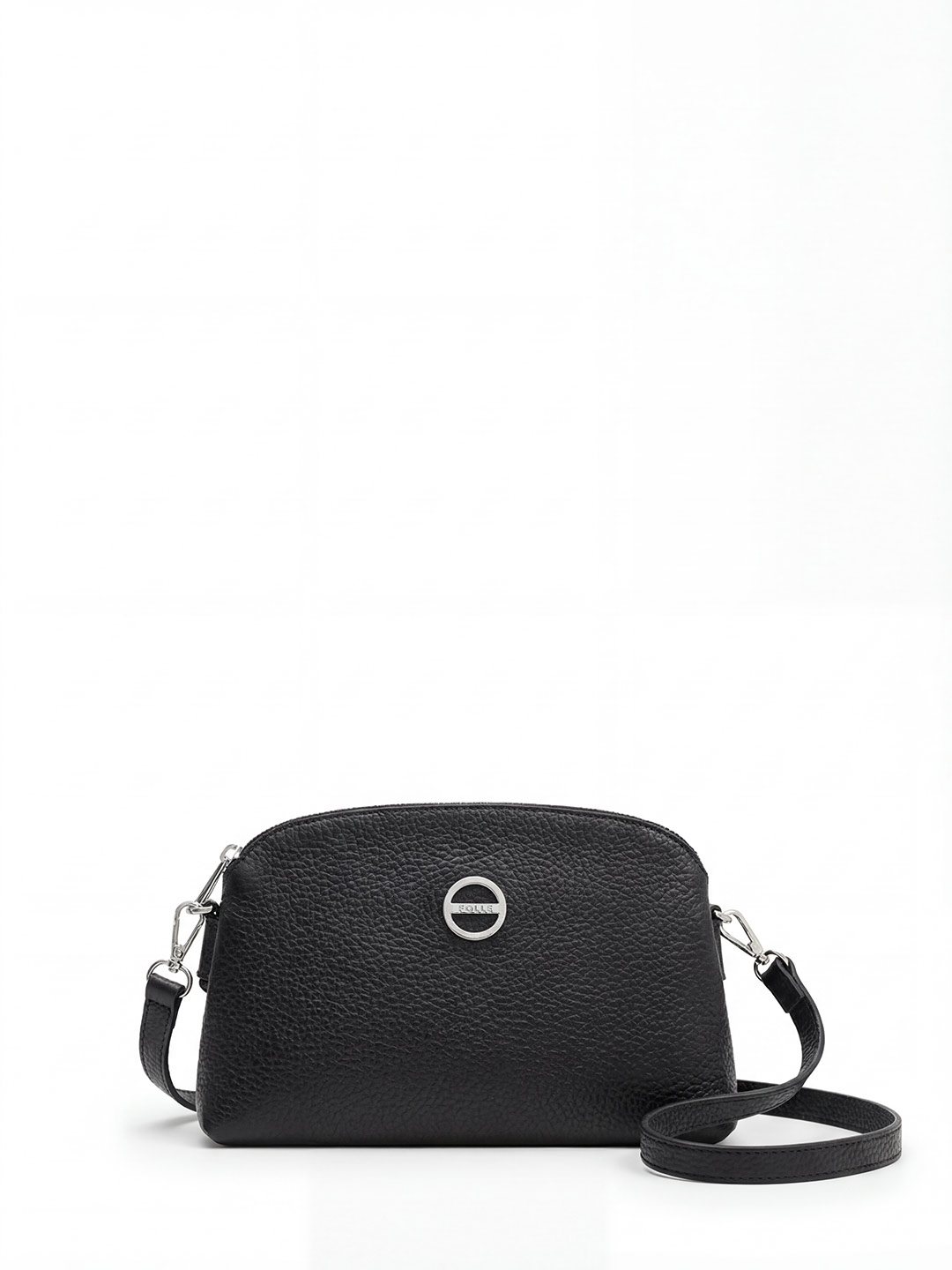 Небольшая сумка через плечо с тремя отделениями от Folle из крупнозернистой черной кожи fo7712 buffalo nero