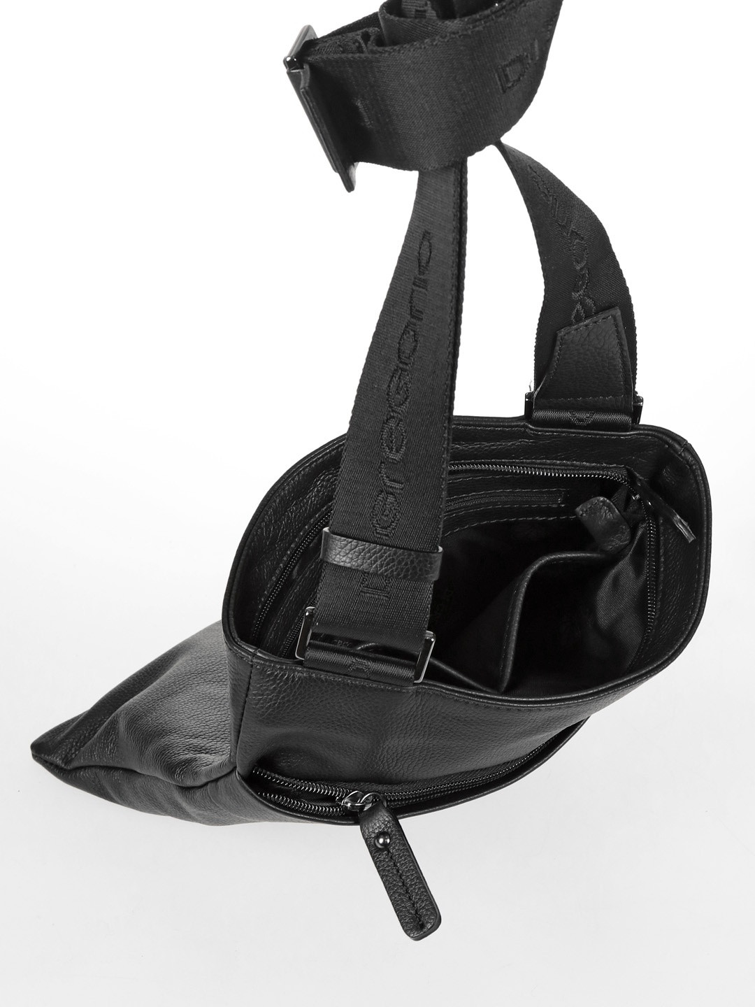 Длина мужской сумки Di Gregorio (Ди Грегорио) - 27 см, ширина по дну - 2 см, высота - 30 см. Спереди два кармана, один из них на молнии, внутри карман на молнии и кармашки для мелочей. Сумочка носится на плече или через плечо.