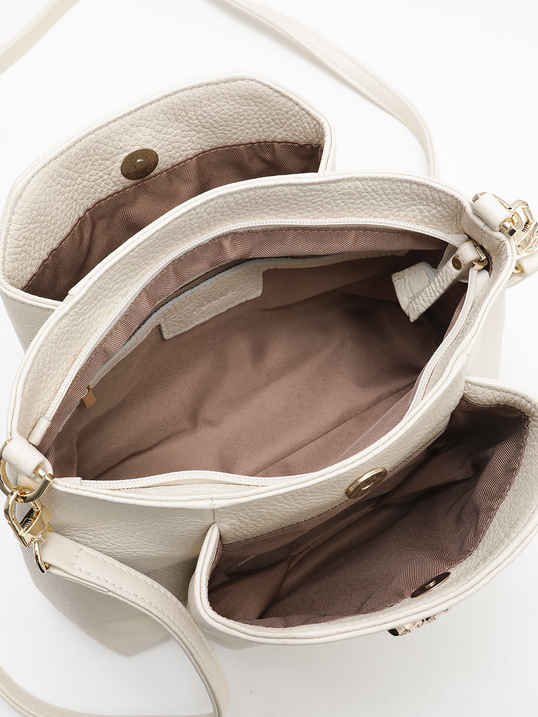 Базовая сумка через плечо с фурнитурой в виде головы льва от FOLLE из натуральной кожи бежевого цвета fo2147-HFG 778 бежевый