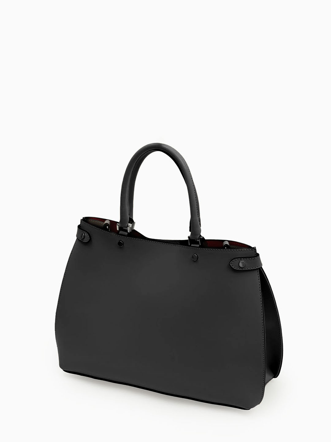 Большая классическая сумка жесткой формы с красным подкладом от Be Nice из кожи черного цвета BN TERESA-BIG box nero