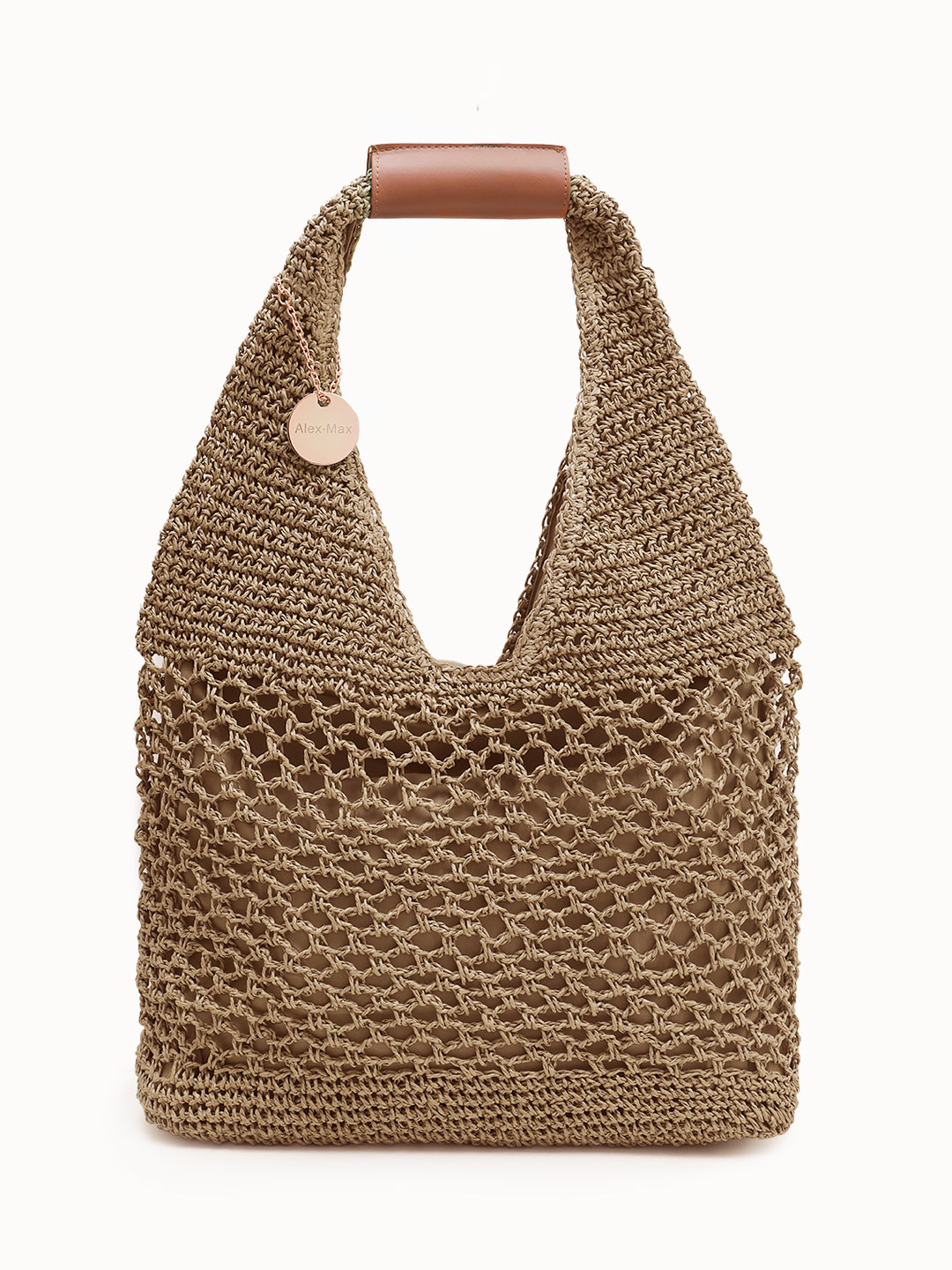 ВЫСОКАЯ СУМКА-МЕШОК ИЗ ПЛЕТЕНОЙ РАФИИ ОТ ALEX MAX КОРИЧНЕВОГО ЦВЕТА